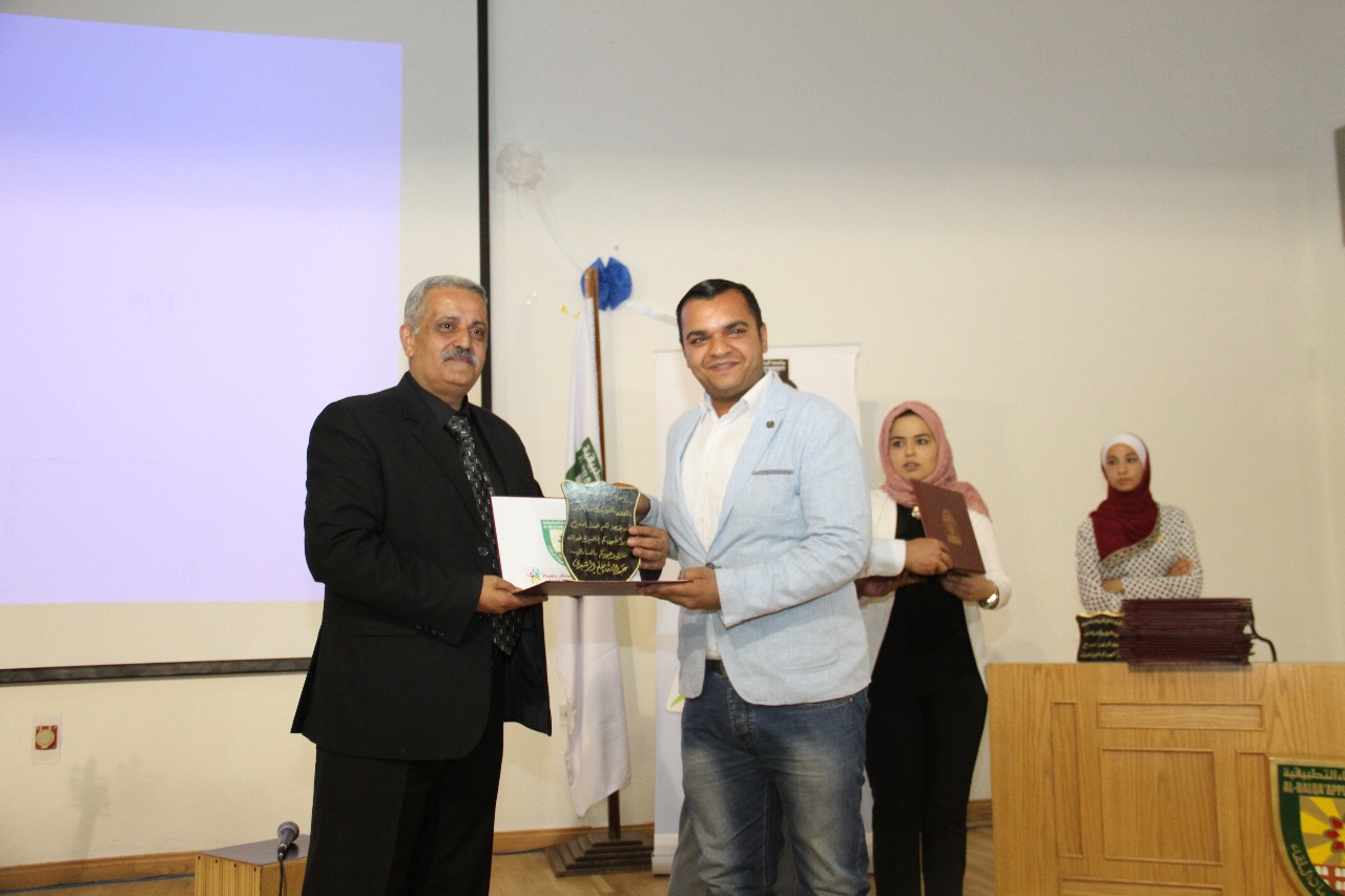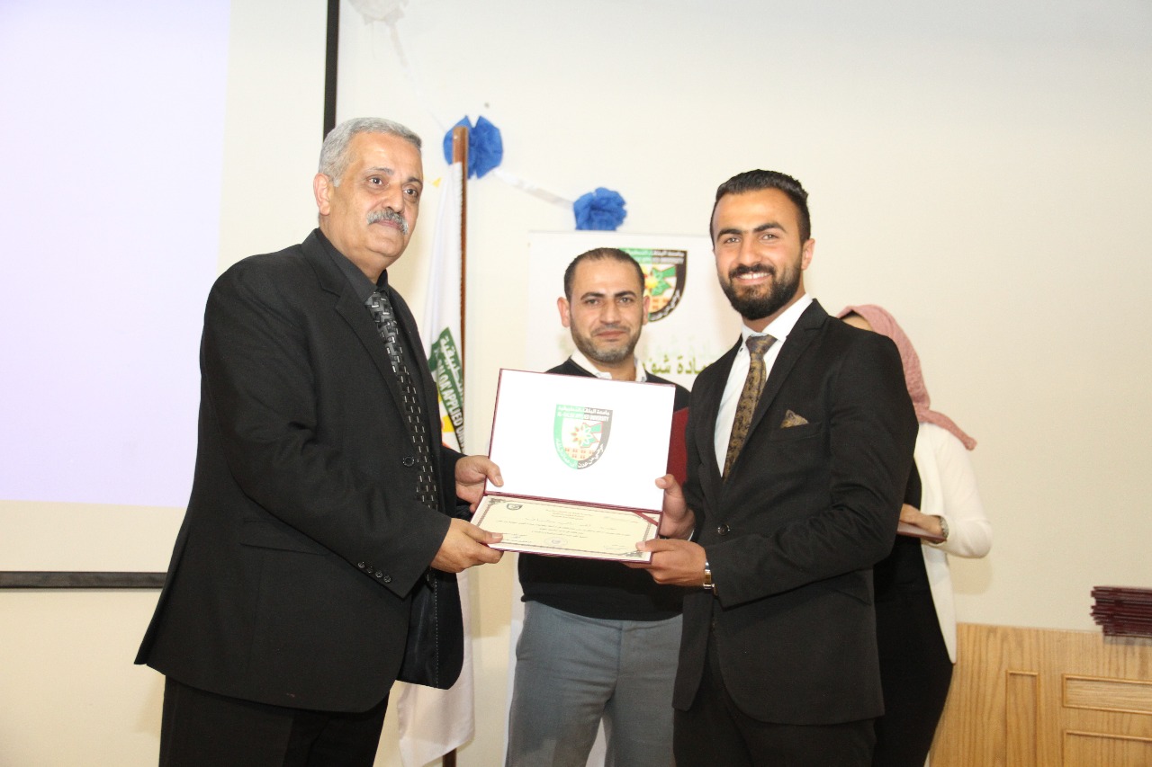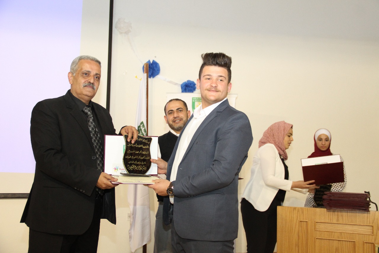 وبين عميد شؤون الطلبة في جامعة البلقاء التطبيقية الدكتور معاذ الحيار ي خلال حفل التكريم