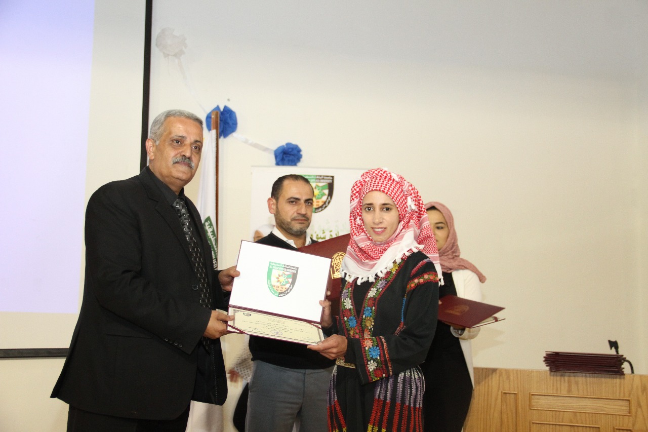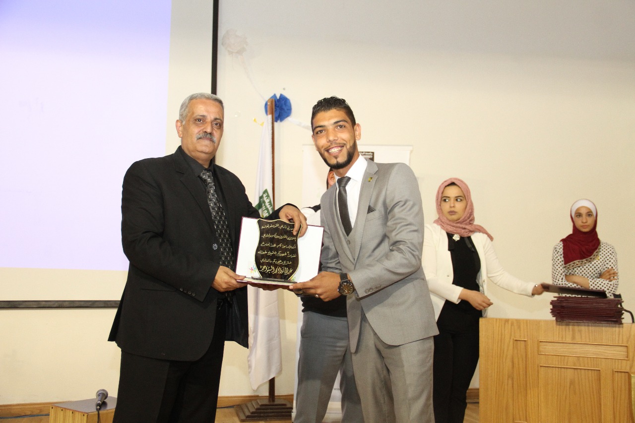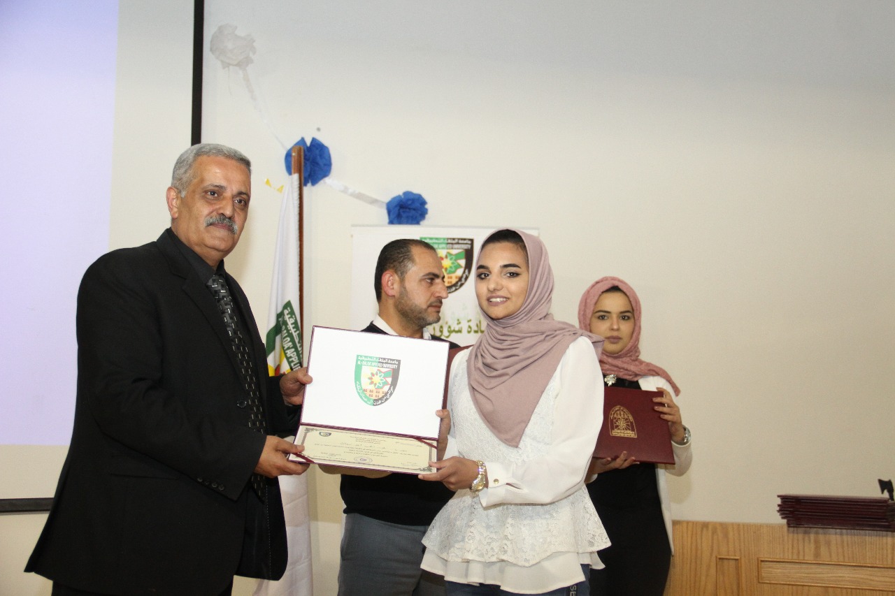 وبين عميد شؤون الطلبة في جامعة البلقاء التطبيقية الدكتور معاذ الحيار ي خلال حفل التكريم