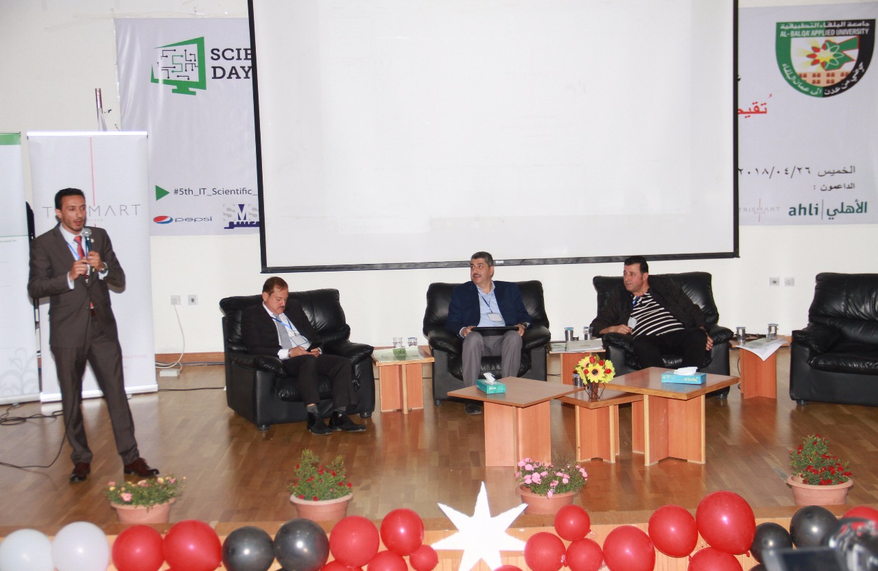 وتضمنت فعاليات اليوم العلمي الذي حضره عمداء كليات في الجامعة بجلسته الصباحية حديثاً لرئيس مجلس إدارة مركز الملك عبدالله الثاني لتدريب العمليات الخاصة مؤيد السمان.