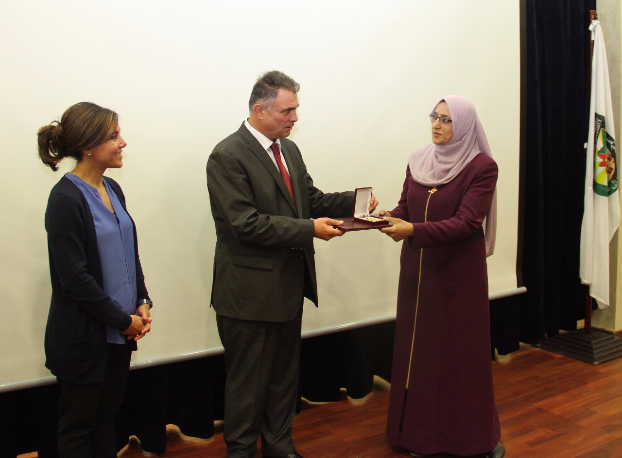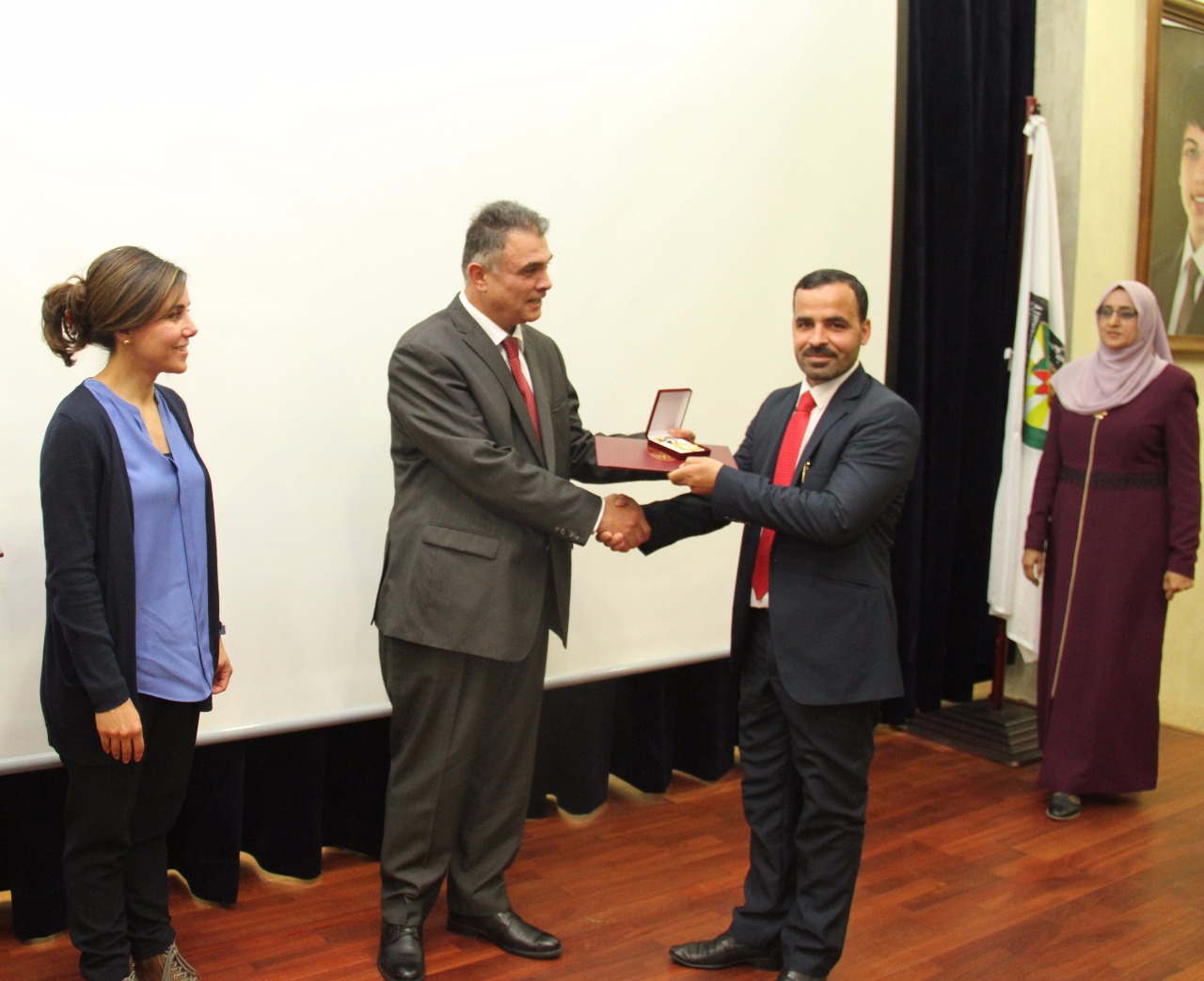 وسلم الأستاذ الدكتور عبد الله سرور الزعبي راعي الاحتفال جائزتين تقديريتين للمعلمين الفائزين في جائزة جلالة الملكة رانيا العبدالله للتميز التربوي كما قدم درع الجامعة للمديره التنفيذيه لجائزة جلالة الملكة رانيا العبدالله لبنى طوقان وقد حضر الاحتفال الأساتذه نواب الرئيس وعمداء الكليات ومدراء الوحدات والدوائر وطلبة الجامعة.