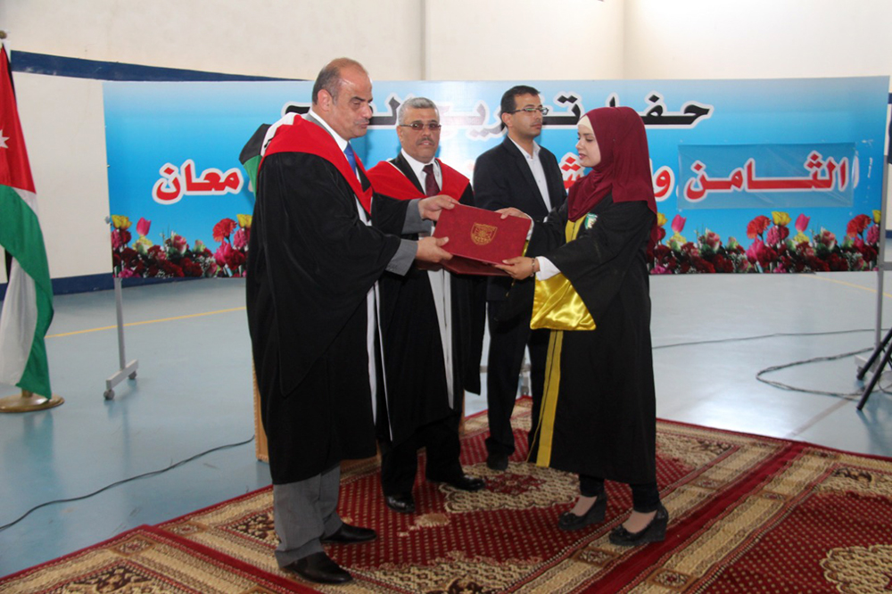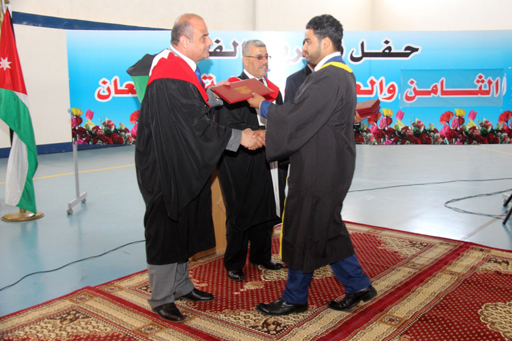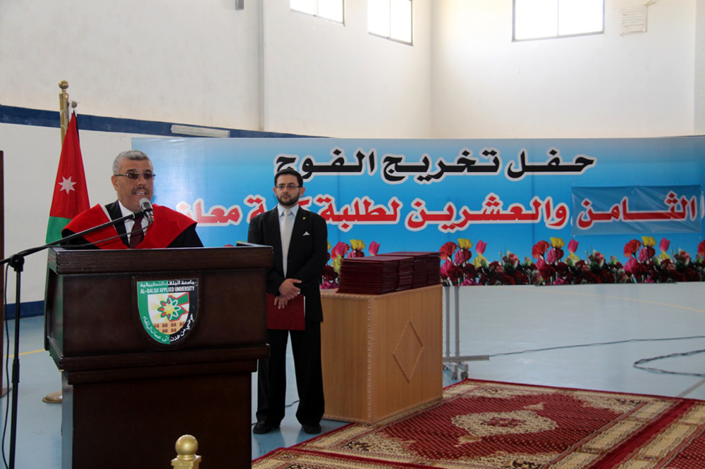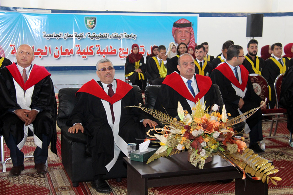 واصلت جامعة البلقاء التطبيقية احتفالاتها كوكبة جديدة من فرسان البلقاء حيث رعى الاستاذ الدكتور جمال النسور نائب الرئيس لشؤون الاستثمار ومندوبا عن الاستاذ الدكتور عبدالله سرور الزعبي رئيس الجامعة حفل تخريج طلبة كلية معان الجامعية بحضور الاستاذ الدكتور عوده مراد عميد الكلية وأعضاء الهيئة التدريسية فيها وجمع غفير من ذوي الخريجين.