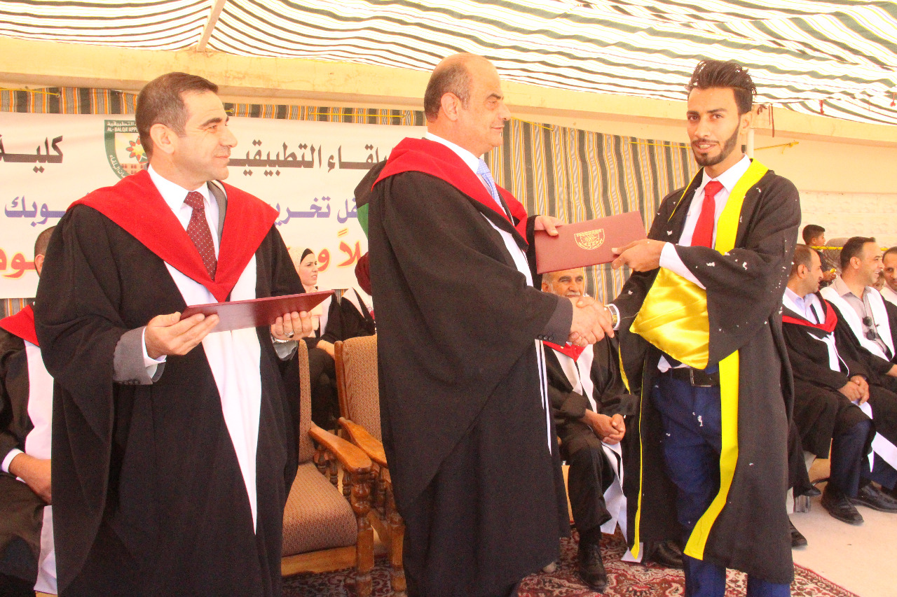واصلت جامعة البلقاء التطبيقية احتفالاتها بتخريج كوكبة جديدة من طلبتها حيث رعى الاستاذ الدكتور جمال النسور نائب الرئيس لشؤون الاستثمار مندوبا عن الاستاذ الدكتور عبدالله سرور الزعبي رئيس الجامعة احتفال الجامعة بتخريج طلبة كلية الشوبك الجامعية بحضور الاستاذ الدكتور محمد سند ابو درويش عميد الكلية وأعضاء الهيئة التدريسية وجمع غفير من ذوي الخريجين.