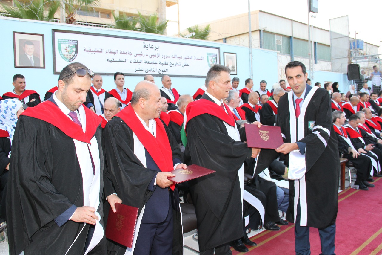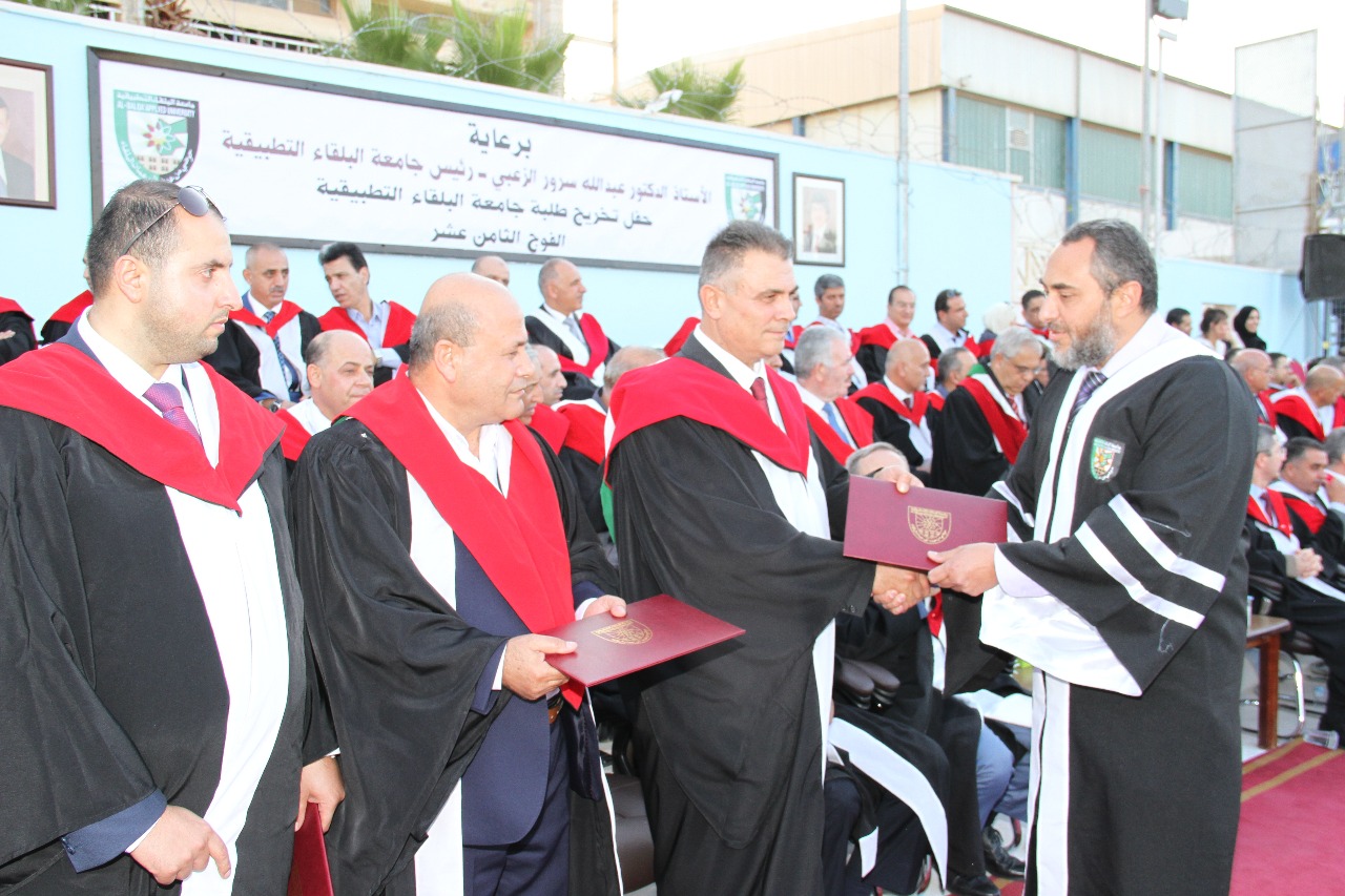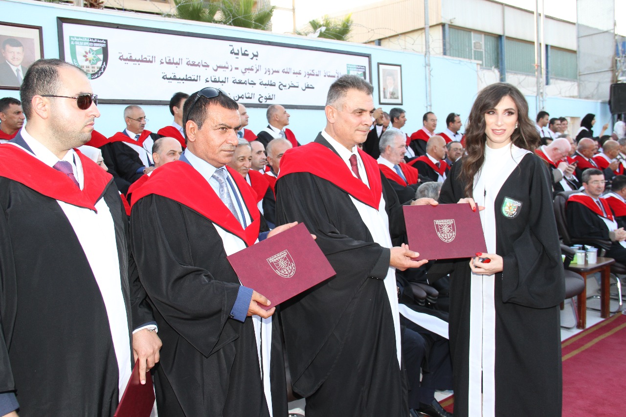 تم اليوم برعاية الأستاذ الدكتور عبدالله سرور الزعبي رئيس جامعة البلقاء التطبيقية حفل تخريج طلبة الدراسات العليا في كافة التخصصات وبلغ عددهم 127 طالبا وطالبة وطلبة كلية الهندسة في مركز الجامعة وبلغ عددهم 497 طالبا وطالبة