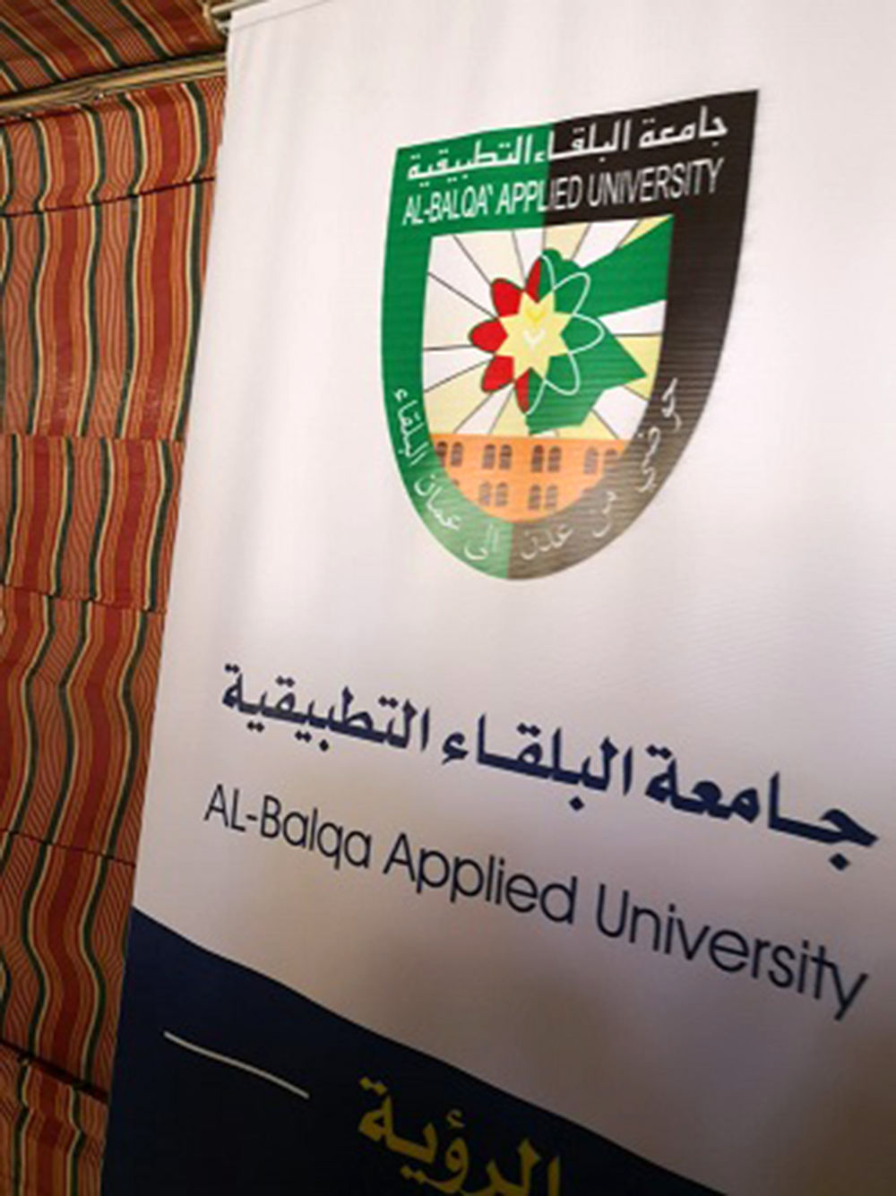 حيث تم عرض ايجاز عن جامعة البلقاء التطبيقيه وما تتميز به من التعليم التقني والتطبيقي و التخصصات المتوفرة فيها والكليات المنتشره من العقبه إلى اربد ، حيث يرتاد المعرض الطلبة المهتمين من السوريين والمقيمين على أرض الدولة.