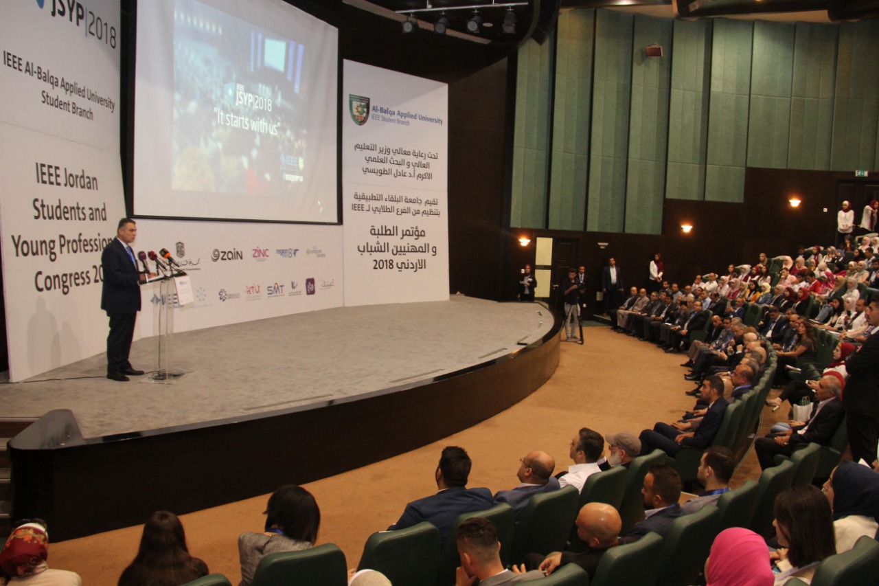 افتتح الأستاذ الدكتور عادل الطويسي وزير التعليم العالي والبحث العلمي مؤتمر الطلبه   والمهنيين الشباب  الاردني.2018 في دورته الخامسه  بتنظيم من الفرع الطلابي IEEE البولتكنك  في مسرح مجمع الاعمال