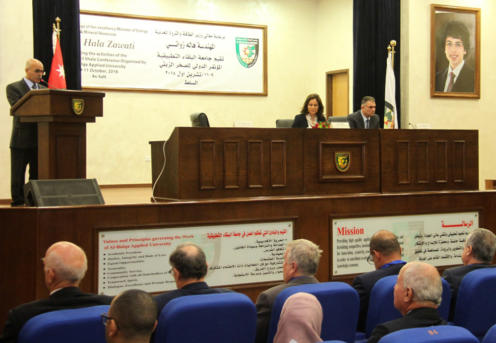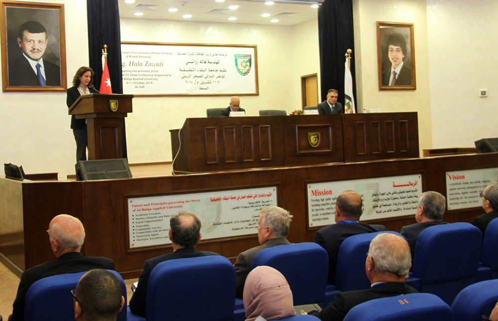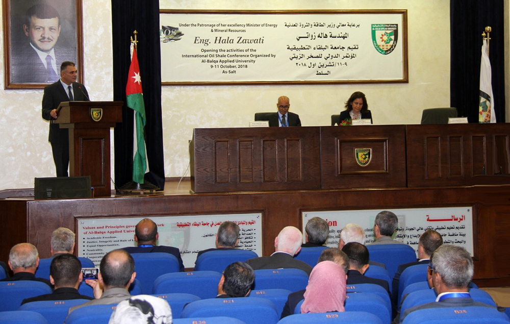 رعى وزير الطاقة والثروة المعدنية المهندسة هالة زواتي فعاليات المؤتمر الدولي للصخر الزيتي الذي عقد في رحاب جامعة البلقاء التطبيقية بحضور رئيس الجامعة الأستاذ الدكتور عبدالله سرور الزعبي ورئيس لجنة الطاقة النيابية النائب هيثم زيادين والنائب جمال قموة والأساتذة نواب رئيس الجامعة وعدد من الباحثين من دول أمريكا واستونيا والصين والمغرب وأستراليا، بالإضافة إلى الأردن وممثلين عن الشركات الداعمة للمؤتمر.