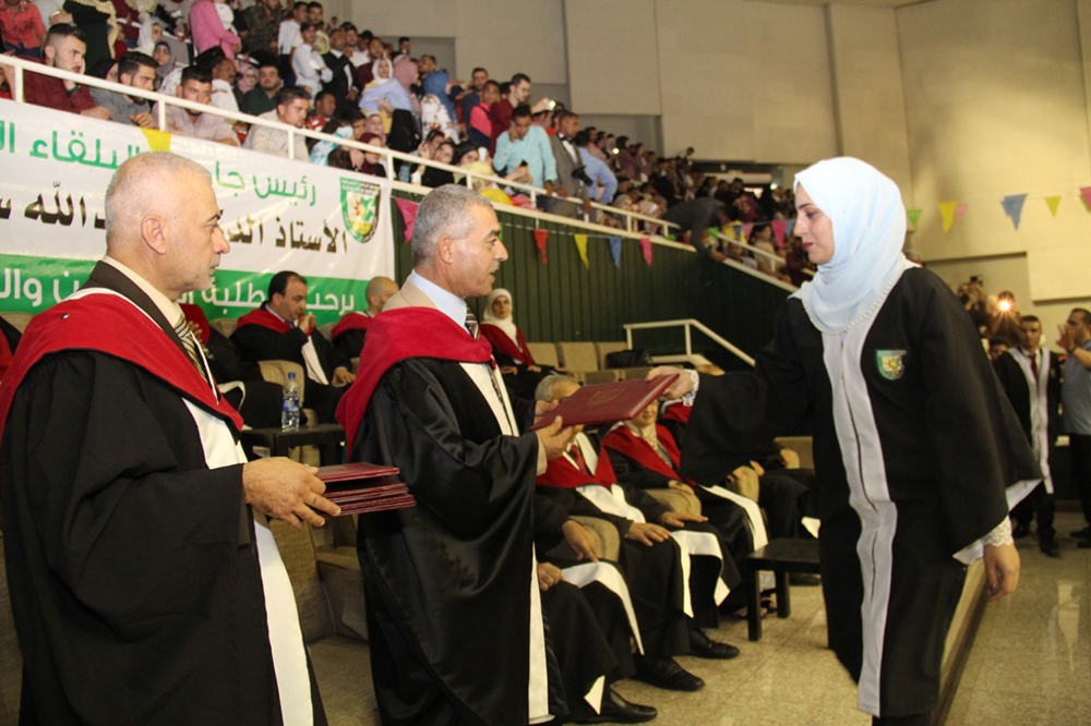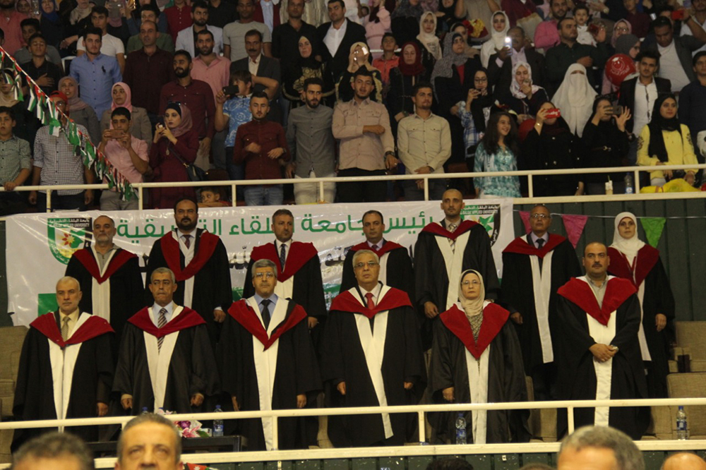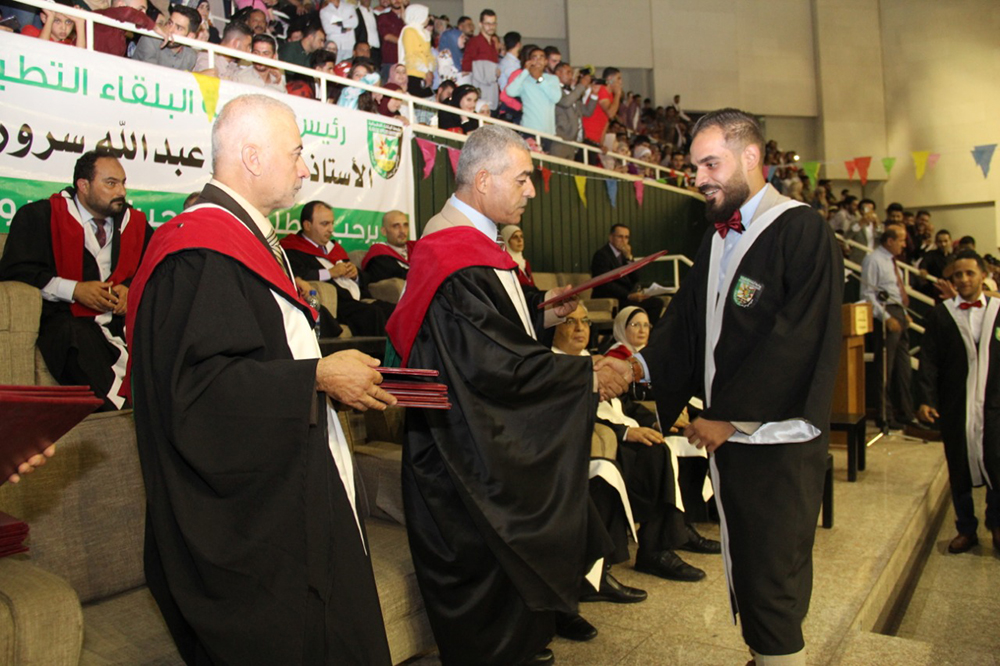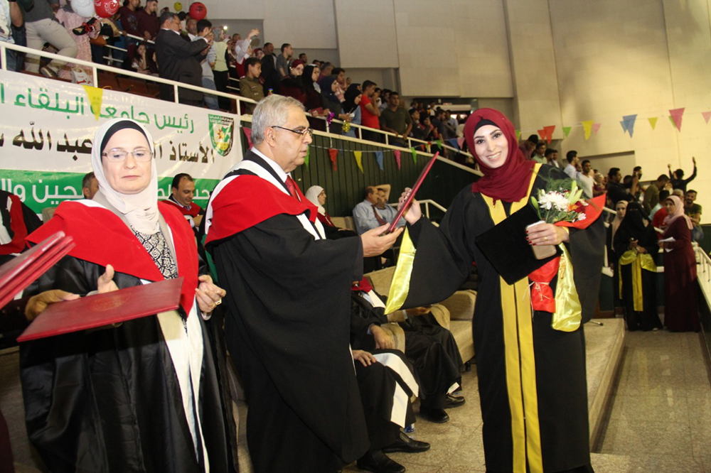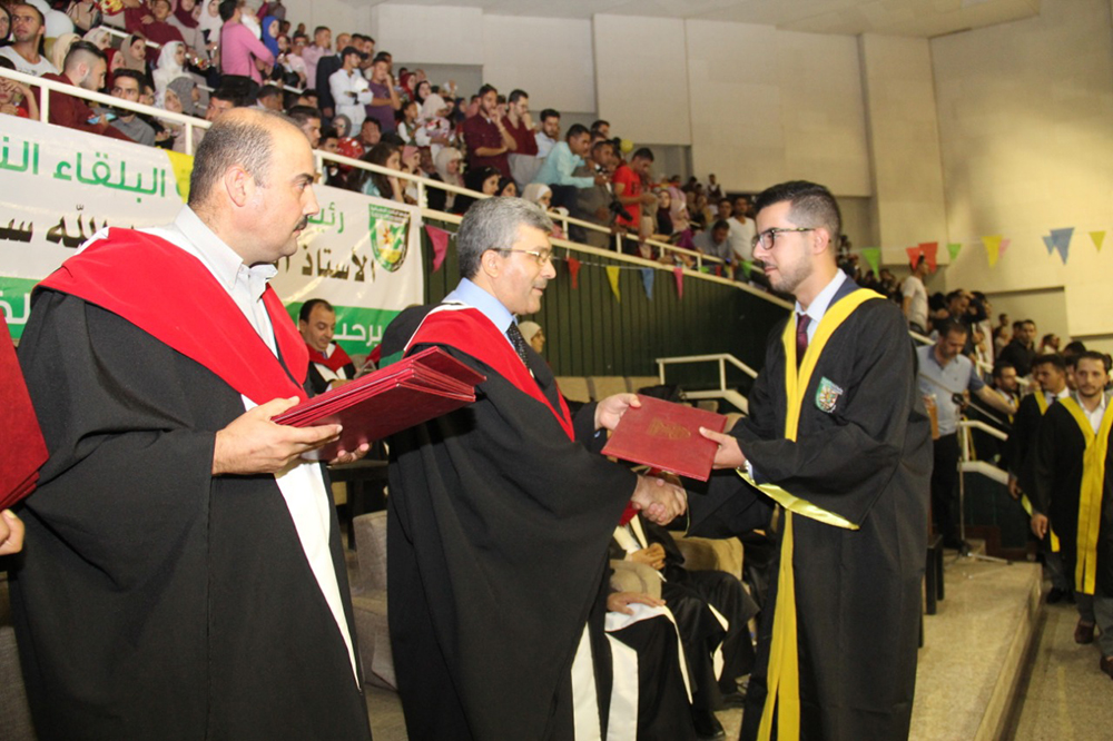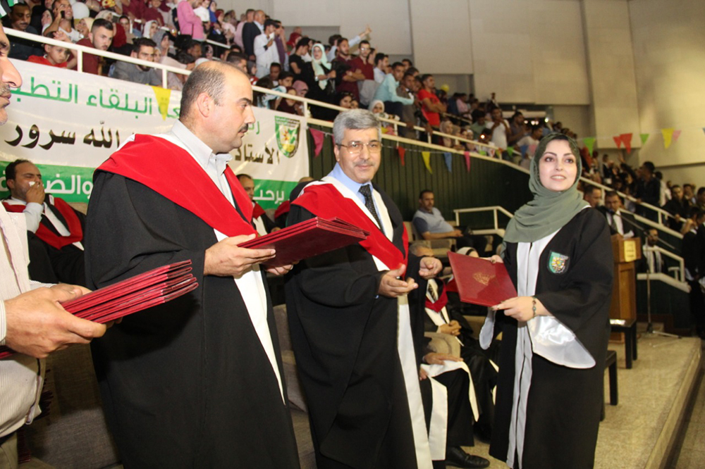 وفي ختام الحفل الذي استهل بالسلام الملكي وتلاوة آيات من الذكر الحكيم وجرت فعالياته في مدينة الحسن الرياضية في مدينة اربد سلم الاساتذة عمداء الكليات الشهادات على الخريجين.