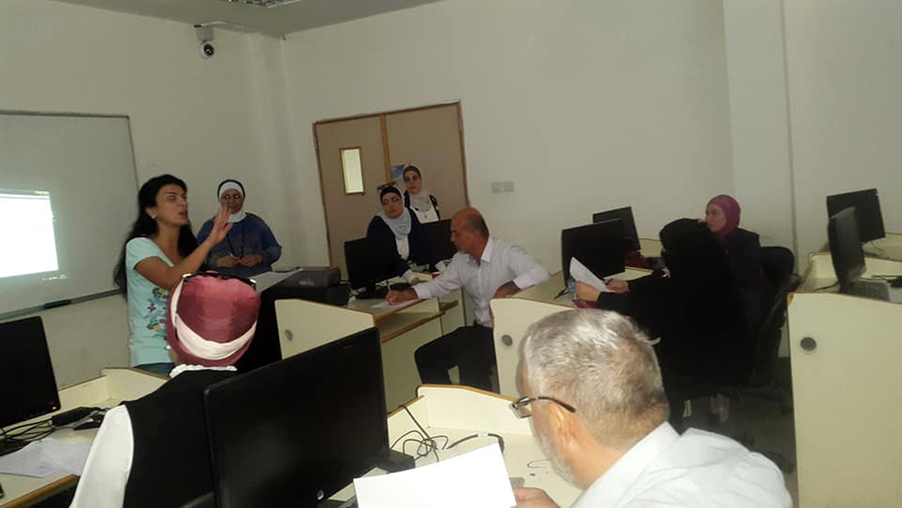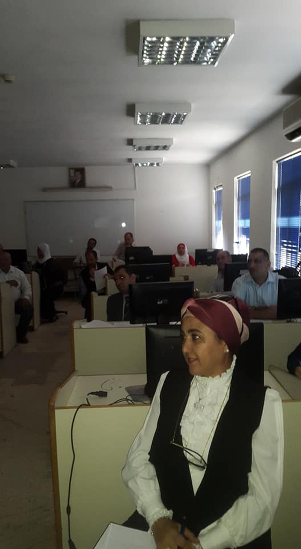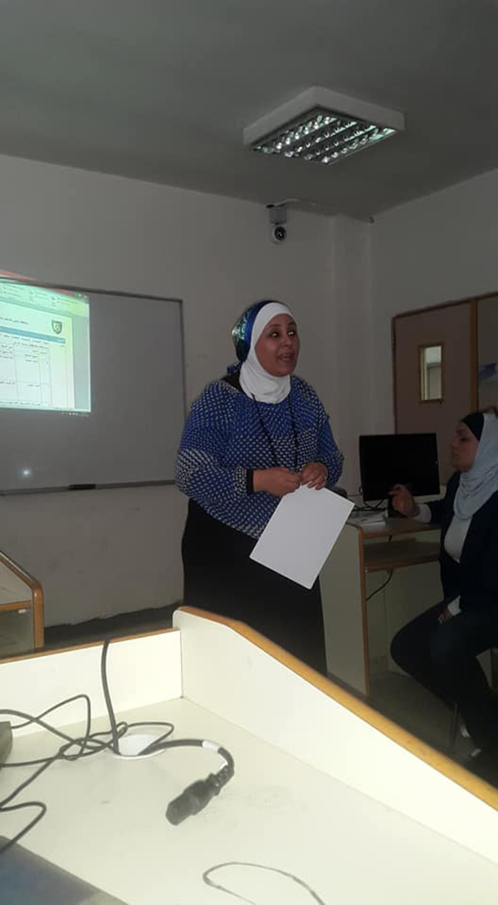 ثم تركت المجال للسيدة رولا قاقيش والانسة أسماء العواملة لشرح كيفية إنشاء ملف مساق لكل مادة يدرسها المدرس وكيفية تفريغ ما يتم طرحه وشرحه في المحاضرات في نماذج مجهزة من قبل قسم التدريب والتطوير والجودة باللغة العربية أو الانجليزية. ثم تسليمها تبعًا للجنة القسم وللجنة قسم التدقيق والجودة .