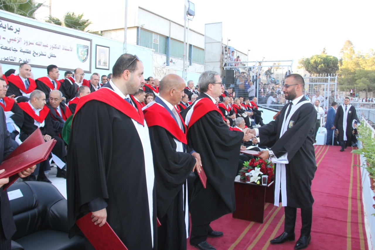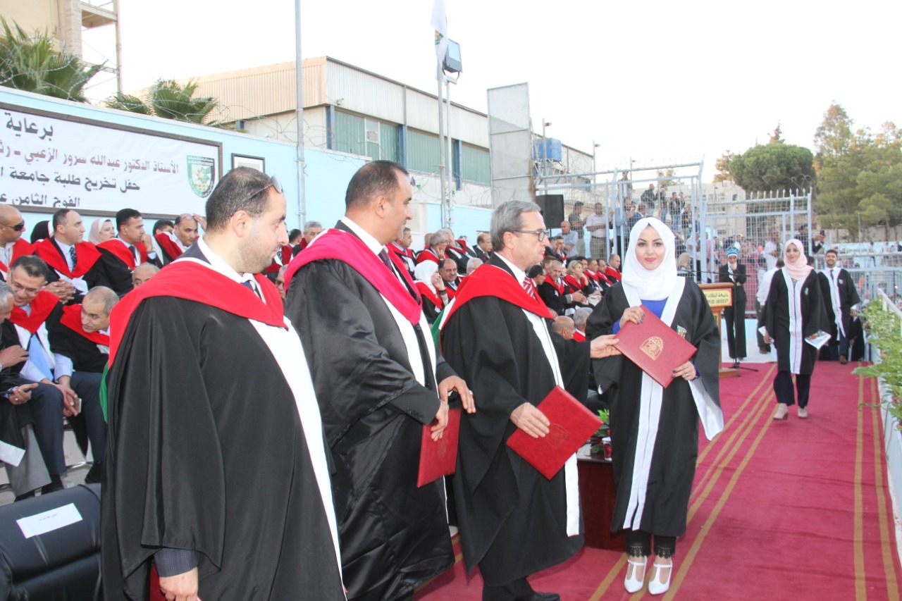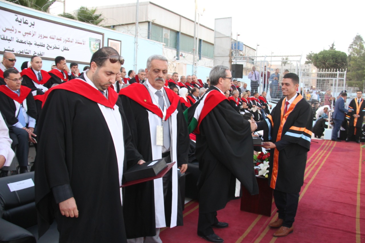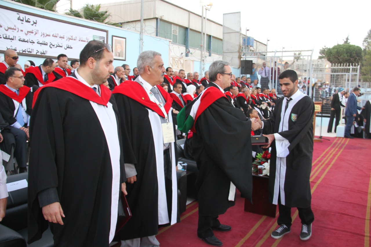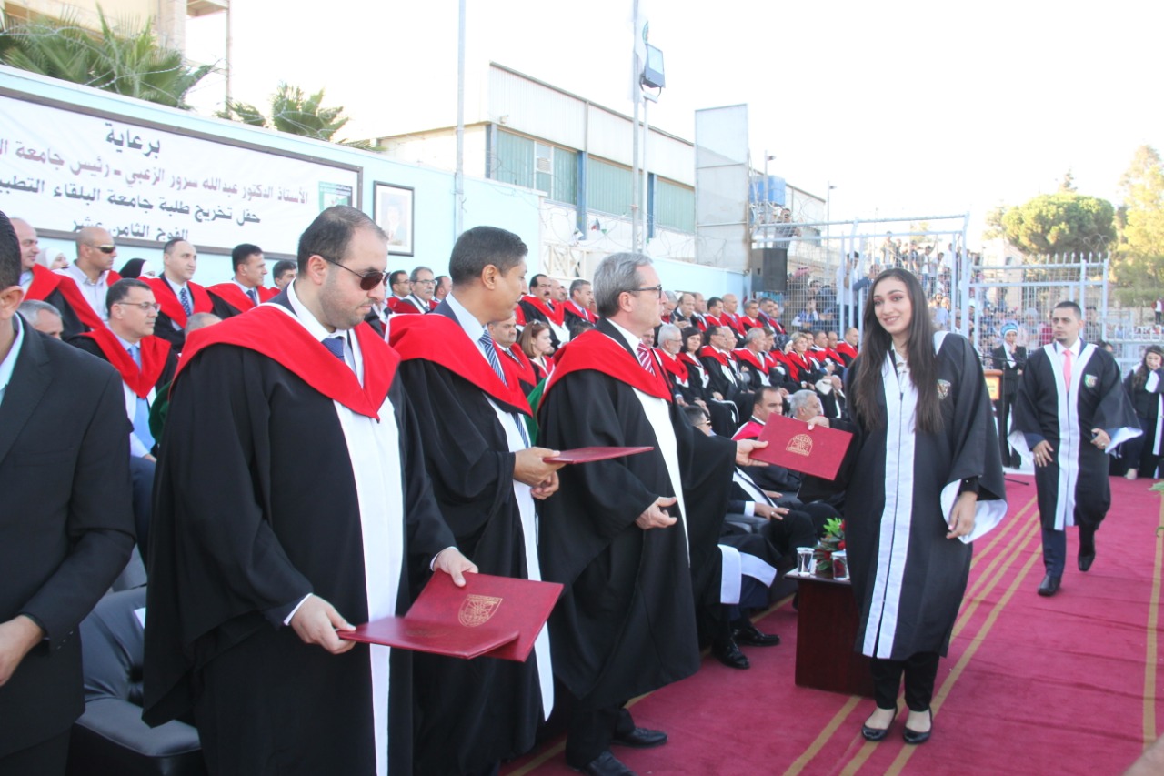 وفي ختام الحفل الذي استهل بالسلام الملكي وتلاوة آيات من الذكر الحكيم وجرت فعالياته في ملعب الجامعة في مدينة السلط سلم مندوب رئيس الجامعة الشهادات على الخريجين والبالغ عددهم (943) خريج .