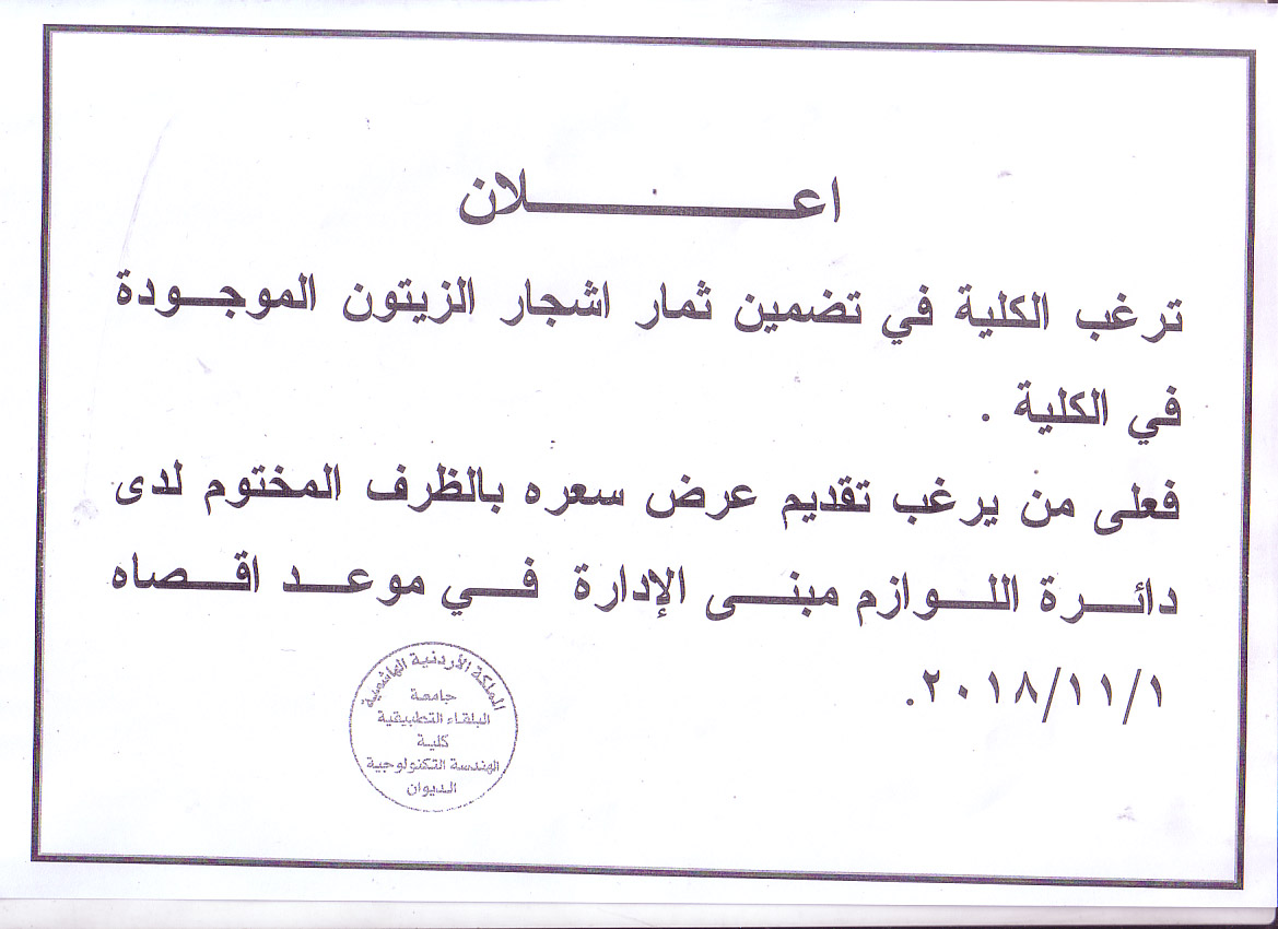 اعلان صادر عن قسم اللوازم