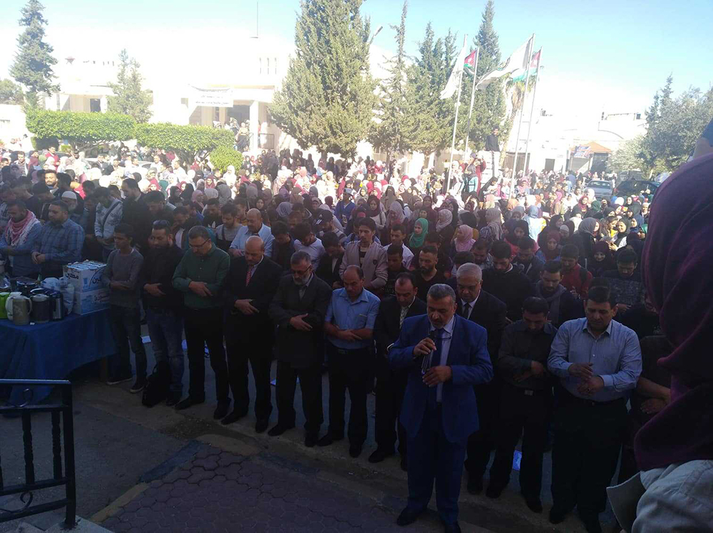 وتم قراءة سورة الفاتحة على أرواح شهداء الوطن الذين فاضت أرواحهم إلى الله عز وجل في حادثة البحر الميت، والدعاء للمصابين بالشفاء العاجل، ولذويهم الصبر والسلوان، وأن يحفظ الأردن قيادة وأرضا وشعبا.