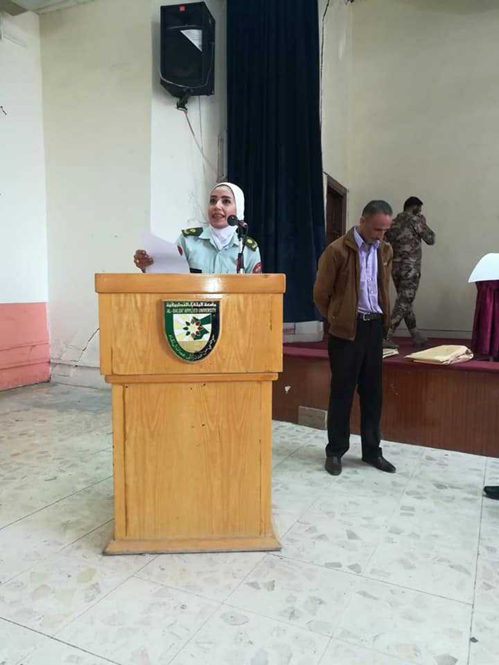 ثم تم توزيع نسخة من العقد الخاص بالمبعوثين للدراسة في الجامعات وكليات المجتمع الأردنية ،ونسخة من التعهد الأمني لكل طالب مكرمة. وبين للطالبات إجراءات تعبئتها وتسليمها لقسم التسجيل في الكلية، وإرفاق الوصولات المالية المختومة وضرورة الالتزام بالفترة الزمنية المحددة لرفعها لركن البعثات العسكرية في جامعة البلقاء التطبيقية .