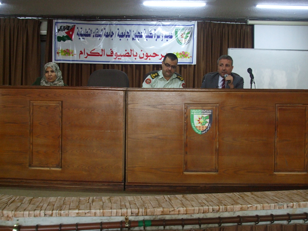 وفي البداية رحب الدكتور ايمن فريحات مندوبا عن عميد كلية عجلون الجامعية الاستاذ الدكتور حامد الدعوم بمندوبي المكرمة الملكية وشكرهم على جهودهم التي يبذلوها في خدمة الطلبة .