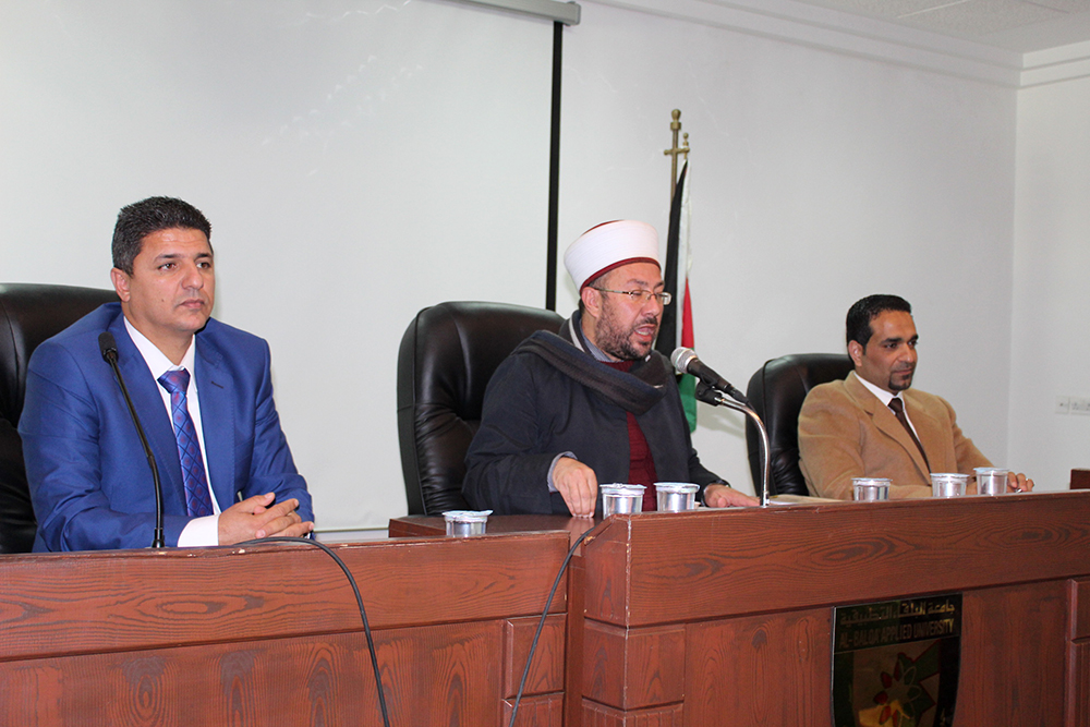 بدوره شكر عميد الكلية الاستاذ الدكتور بشير العلوان مفتي البلقاء  على قبول الدعوة معربا عن اهمية  التمسك بمبادئنا وتعاليمنا الدينية  فمولد النبي هو مولد للإنسانية اخرجها من ظلمات الشرك الى نور الايمان ومن الجهل الى العلم ومن الغي الى الرشاد واننا نعمل معا في بناء المؤسسات وتطويرها بالعلم والمعرفة والحكمة والموعظة في ظل القيادة الهاشمية