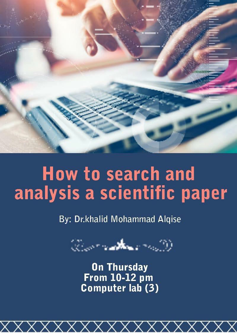 ضمن الأنشطة اللامنهجية التي تقيمها كلية الزرقاء الجامعية لطلبتها قام الدكتور خالد القيسي/قسم العلوم الطبية المساندة بإعطاء ورشة الطلبة عن الأبحاث والورقة العلمية وتعلم أساسيات البحث العلمي حيث كانت الفئة المستهدفة الطلبة الخريجين وذلك للتحضير للندوات العلمية. حيث تم التطرق في هذه الورشة كيفية استخدام قاعدة البيانات في المكتبة الرئيسية لجامعة البلقاء التطبيقية وكيفية تسجيل أيميل الكتروني فيها للاستفادة والبحث.