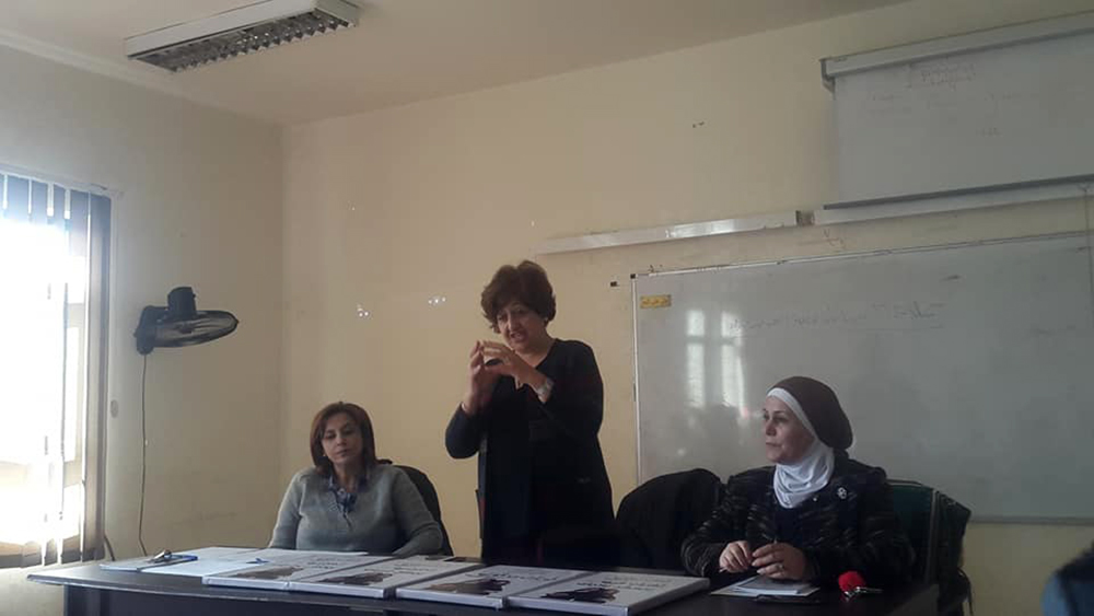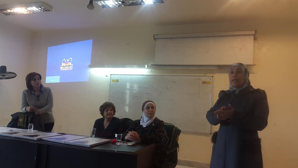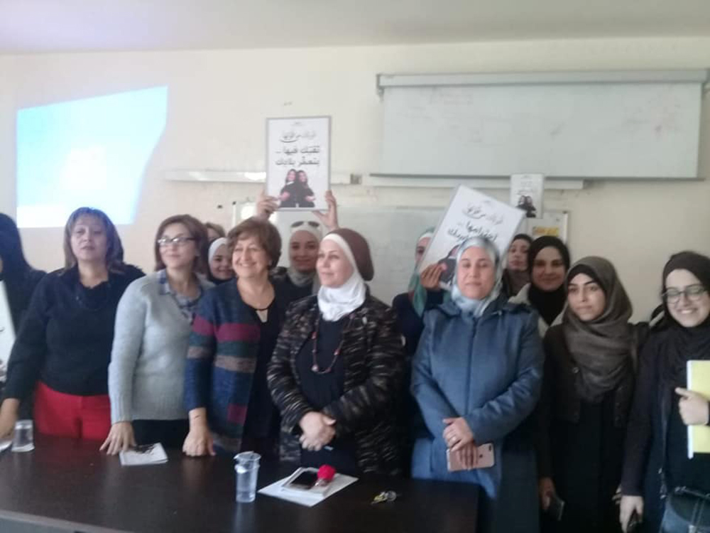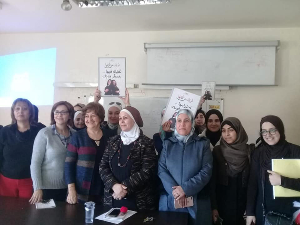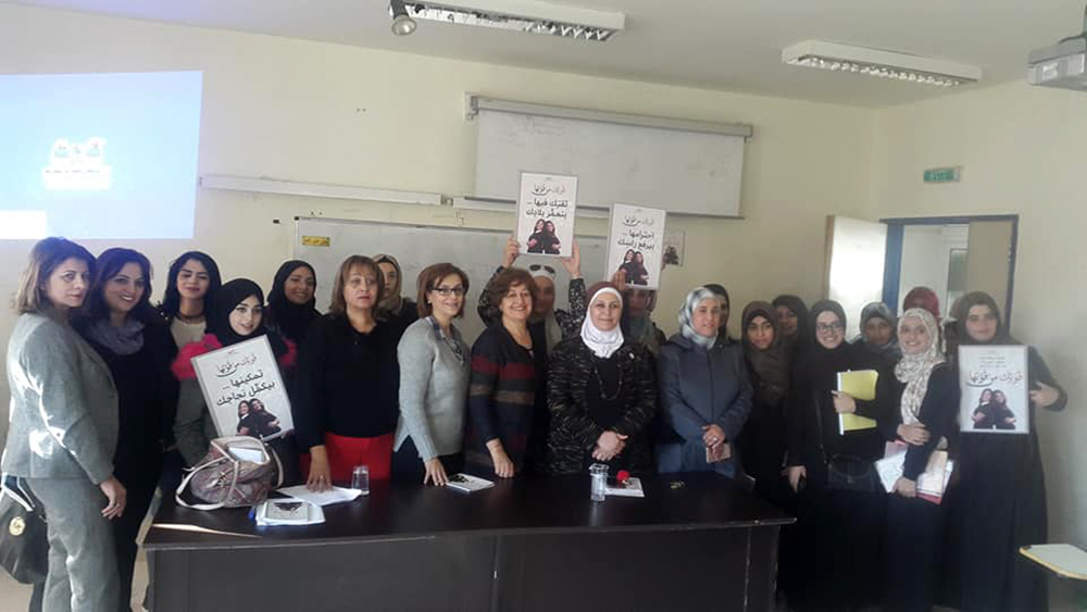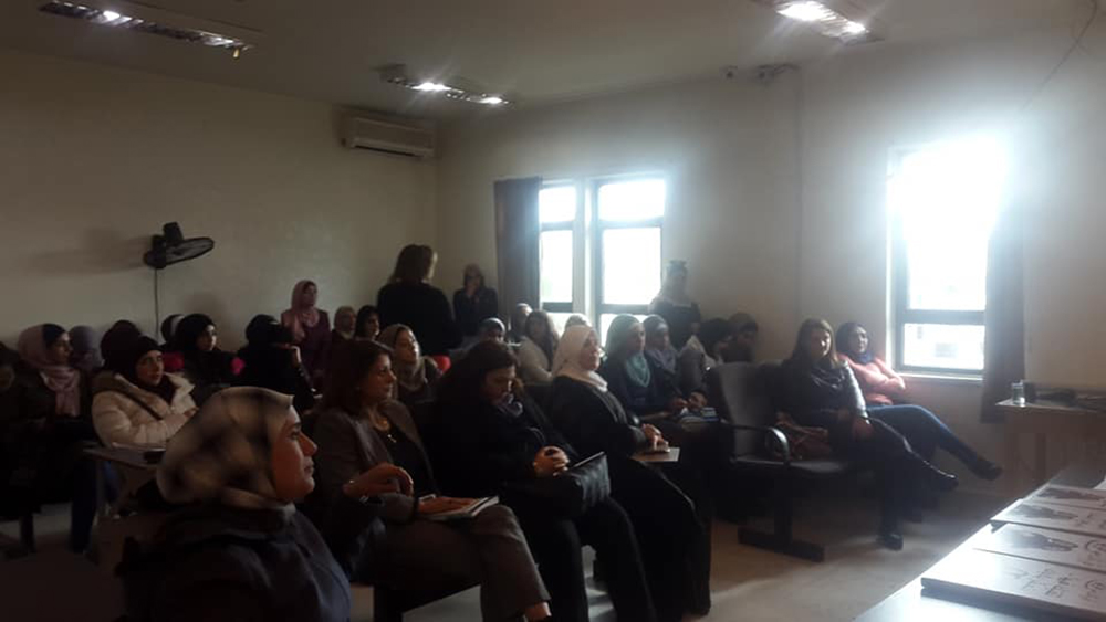 ثم تركت المجال للسيدة بسمة قموه من المركز العربي للخدمات الاستشارية والتدريب والتي وضحت للطالبات ماهية الحملة العالمية التي تُطلقها الأمم المتحدة في الخامس والعشرين من تشرين الثاني من كل عام وتستمر لمدة ستة عشر يومًا والمرتكزة على قضايا المرأة والمشاكل التي تواجهها في المجتمع المحلي والبيئة المحيطة بها. وبينت للطالبات الدور الذي تؤديه الجمعية وأثره على المجتمع الأردني منذ تأسيسها في عام 1998 ،وكعهدها المتواصل اختارت الجمعية في هذا العام شعار (قوتك من قوتها) الذي جاء لتلبية الاحتياجات والتوصيات المنبثقة من الفعاليات والأنشطة التي نفذتها الجمعية خلال العام 2018 والتي تشمل عدد من القضايا أهمها محاربة تزويج الأطفال ،والحماية من العنف بكافة أشكاله ،والتأمينات الاجتماعية ودور المرأة في دعم المرأة.