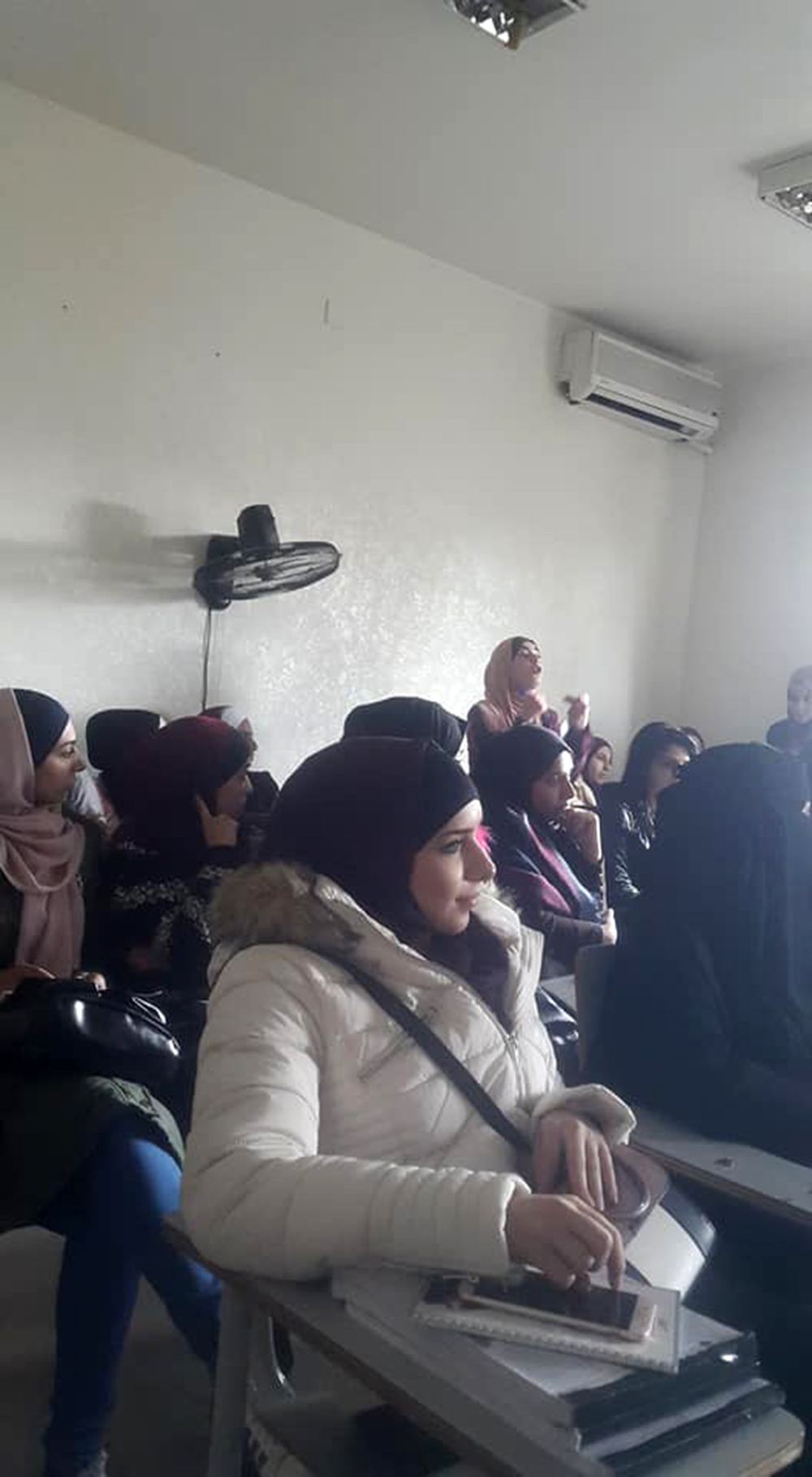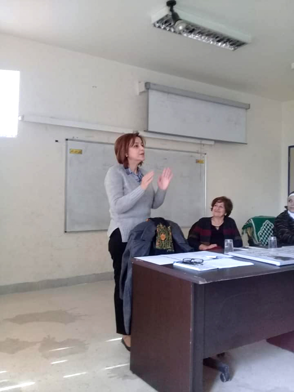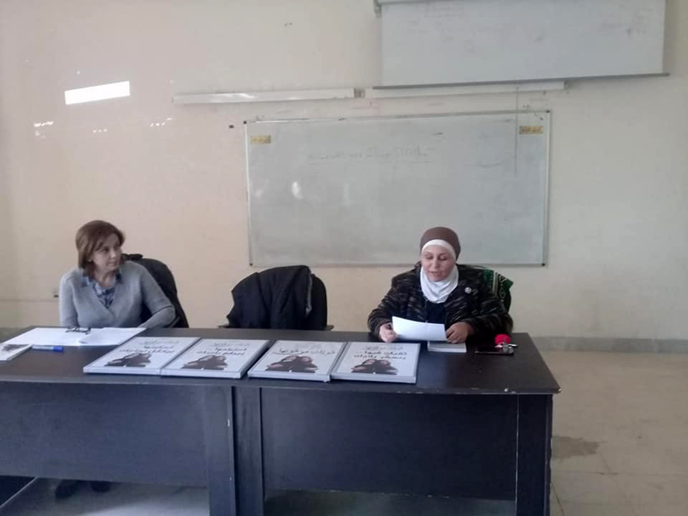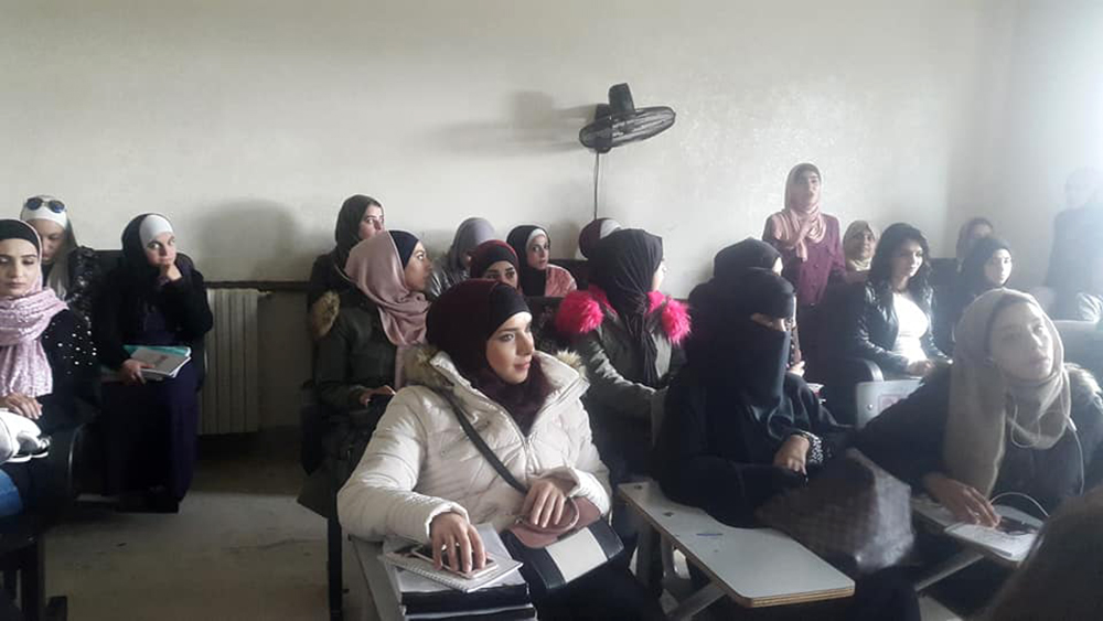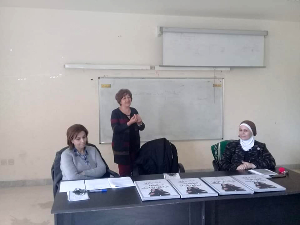 ثم تركت المجال للسيدة بسمة قموه من المركز العربي للخدمات الاستشارية والتدريب والتي وضحت للطالبات ماهية الحملة العالمية التي تُطلقها الأمم المتحدة في الخامس والعشرين من تشرين الثاني من كل عام وتستمر لمدة ستة عشر يومًا والمرتكزة على قضايا المرأة والمشاكل التي تواجهها في المجتمع المحلي والبيئة المحيطة بها. وبينت للطالبات الدور الذي تؤديه الجمعية وأثره على المجتمع الأردني منذ تأسيسها في عام 1998 ،وكعهدها المتواصل اختارت الجمعية في هذا العام شعار (قوتك من قوتها) الذي جاء لتلبية الاحتياجات والتوصيات المنبثقة من الفعاليات والأنشطة التي نفذتها الجمعية خلال العام 2018 والتي تشمل عدد من القضايا أهمها محاربة تزويج الأطفال ،والحماية من العنف بكافة أشكاله ،والتأمينات الاجتماعية ودور المرأة في دعم المرأة.