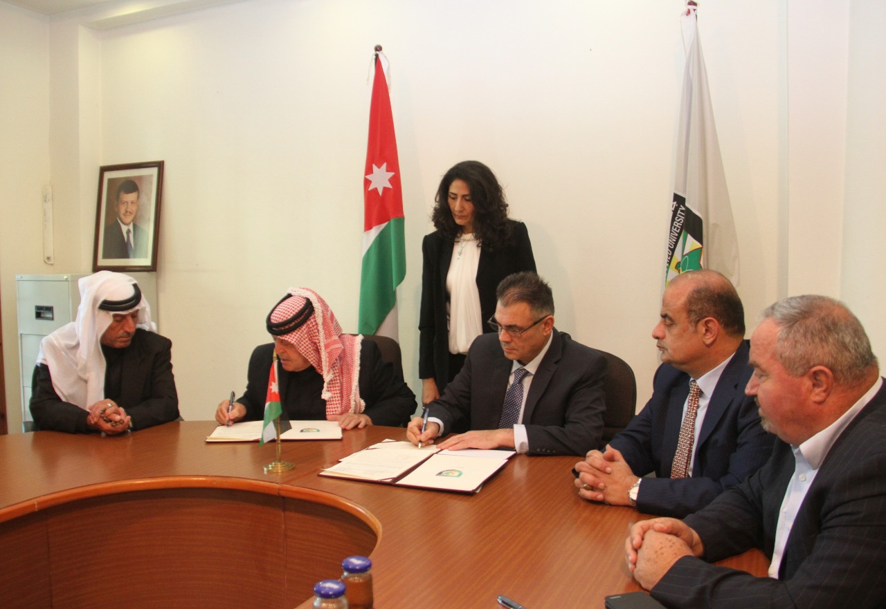 حضر توقيع الاتفاقية نائب رئيس الجامعة للشؤون الإدارية الاستاذ الدكتور جمال النسور وعميد كلية الاميرة عالية الجامعية الاستاذ الدكتور باسم اللوزي ومدير الدائرة الهندسية ومدير العطاءات في الجامعة.