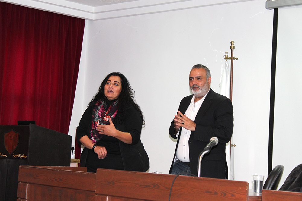 وتحدث في المحاضرة كل من الدكتور بلال ابو طالب والدكتورة مجدولين العبدالله من برنامج الامم المتحدة الانمائي UNDP))) تناولا فيها عدة مفاهيم وجوانب ونصائح سواء من الناحية العملية او من الناحية الانسانية كأهمية الامن الفكري في نبذ العنف الجامعي او المجتمعي فلا أمن ولا استقرار بدون امن فكري فالأمن الفكري السليم ينبذ ويقصي الانحراف وانعدام المسؤولية والادمان والفشل وضعف الشخصية ويعزز المحبة والإنسانية وروح العمل التطوعي لدى الشخص بعيدا عن الثقافة البائسة الموجودة في مجتمعنا .