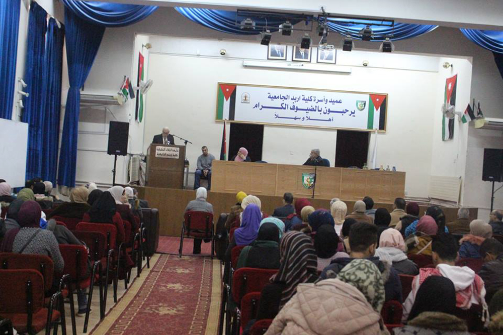 تحت رعاية عميد كلية اربد الجامعية الأستاذ الدكتور مصطفى عيروط نظم بيت الشعراء/الأردن ممثلاً بالشاعر سمير قديسات أصبوحة شعرية في رحاب كلية اربد الجامعية ضمن فعاليات الملتقى الثقافي الأردني اللبناني بحضور نائب العميد الأستاذ الدكتور مريم فريحات ومساعدي العميد وعدد من أعضاء الهيئتين التدريسية والإدارية وعدد من الطلبة والمجتمع المحلي.
