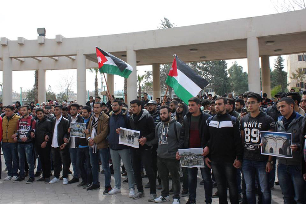 نصرة للاقصى والقدس ... وقفه تضامنية في كلية الهندسة التكنولوجيه بحضور عميد كلية الهندسة التكنولوجية الاستاذ الدكتور فيصل الغثيان اقيمت وقفة تضامنية لمناصرة المسجد الاقصى الشريف من الاعتداءات المتكرره عليه. وفي كلمة القاها عميد الكليه اكد خلالها على عروبة القدس وان تلك المحاولات لتهويدها لن تفلح في ظل العقيده الراسخه لدى احرار الامه بعودة القدس الى الحضن العربي والاسلامي . كما اشاد الغثيان بالدورالتاريخي لجلالة الملك والهاشميين في الرعايه لمقدساتنا في فلسطين والجهد الدولي الذي يبذله جلالته في المحافظة على عروبة القدس . وشهدت الوقفه التي حضرها نواب ومساعدي العميد واعضاء من الهيئتين التدريسيه والاداريه وجمع كبير من طلبة الكليه هتافات وكلمات تدين الاعتداءات المتكرره على المسجد الاقصى والاقتحامات المستمره لباحاته .