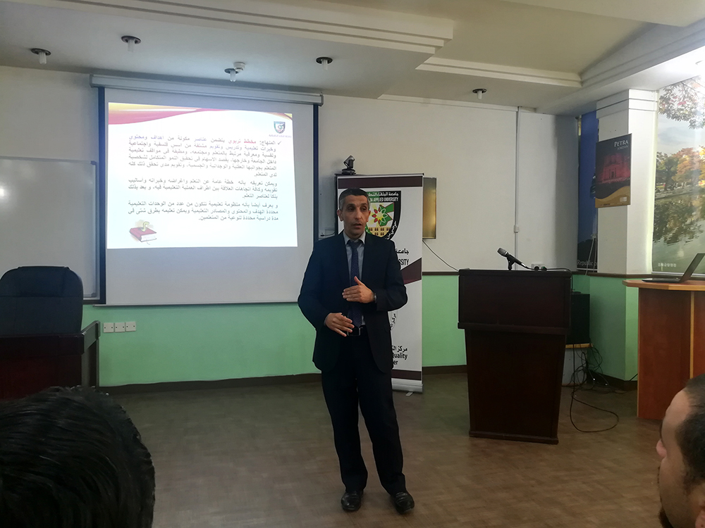حيث أفتتح الدورة الأستاذ الدكتور سعد أبو قديس نائب الرئيس لشؤون التعاون الدولي والجودة وألقى كلمة رحب فيها بالمدرسين الجدد، ولخص فيها إنجازات الجامعة على مدى الأعوام السابقة على الصعيدين الأكاديمي والإداري، وبين الأوجه التي تتميز وتنفرد بها جامعة البلقاء التطبيقية، كما تناول التحديات والصعوبات التي تواجه الجامعة والدور الذي سيلعبه المدرسين الجدد في تذليل هذه الصعوبات والنهوض بالجامعة مع زملائهم المدرسين الأوائل، كما بين للحضور دعم إدارة الجامعة المستمر لعضو هيئة التدريس لتطوير وإثبات ذاته وكفاءاته، وتقديرها للجهود المبذولة من قبل الكوادر التدريسية.