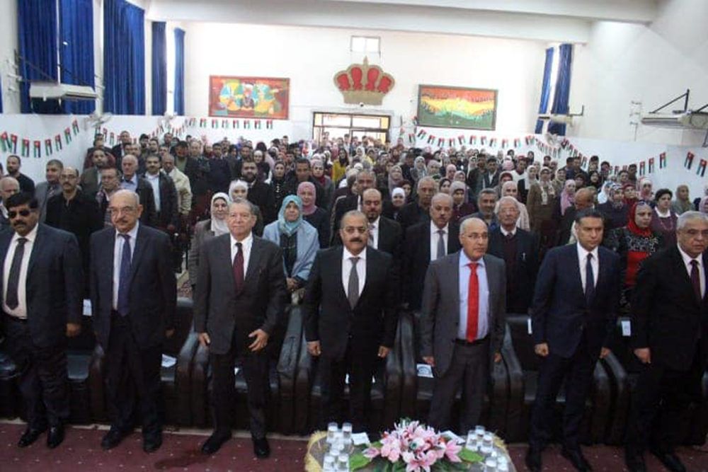 وكان الأستاذ الدكتور مصطفى عيروط  عميد الكلية قد القى كلمة في بداية الاحتفال   قال فيها " ها هو الوطن العزيز الأردن في ظل القيادة الهاشمية بتعزز بالنماء والتطور والانجازات رغم شح الموارد والمنطقة الملتهبة ليصبح الأردن قصة نجاح عالمية واسماً ورسماً عالياً يفتخر به الأردني بأنه أردني بقائدنا أبي الحسين المعظم .