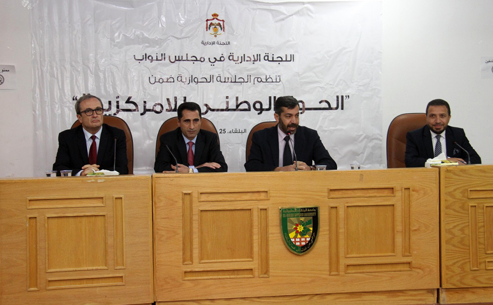 استضافت جامعة البلقاء التطبيقية الجلسات الحوارية التي نظمتها اللجنة الإدارية في مجلس النواب بالتعاون مع وزارة الشؤون السياسية والبرلمانية ضمن الحوار الوطني اللامركزية بحضور نائب رئيس الجامعة للشؤون الاكاديمية الاستاذ الدكتور غاندي انفوقة مندوبا عن رئيس الجامعة الاستاذ الدكتور عبدالله سرور الزعبي وبمشاركة رئيس اللجنة الدكتور علي الحجاحجة ورئيس مجلس محافظة البلقاء موسى العواملة والدكتور احمد العجارمة من وزارة الشؤون السياسية والبرلمانية وعدد من أعضاء مجلس النواب ومجلس محافظة البلقاء .
