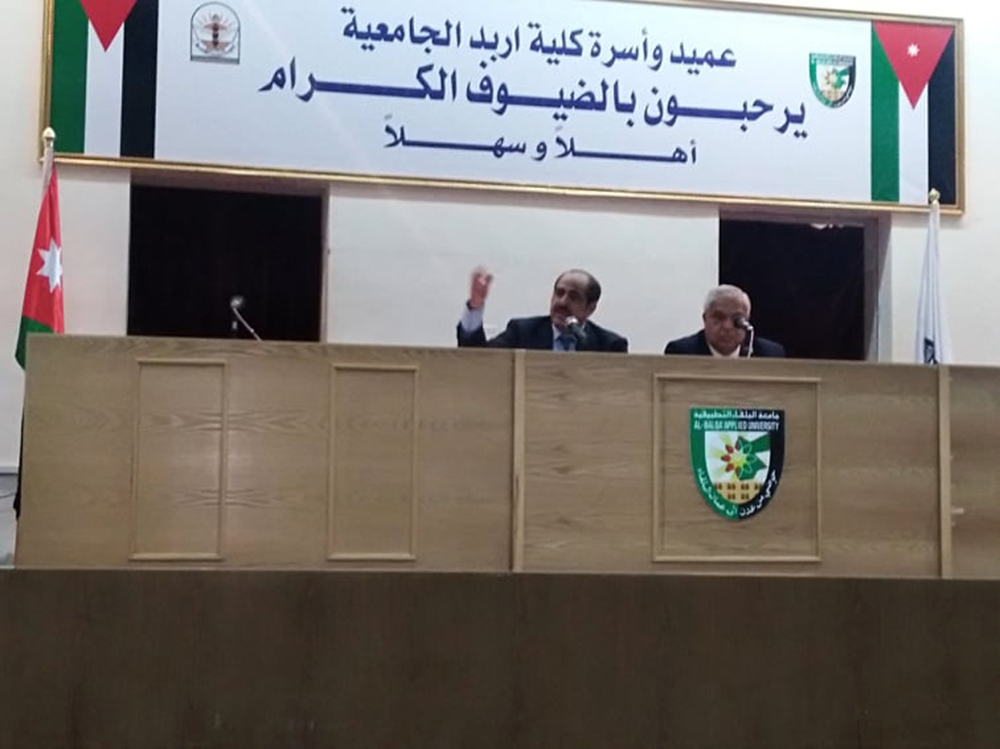 محاضرة معالي الدكتور حازم قشوع في كلية اربد الجامعية عن الاوراق النقاشية لجلالة الملك عبد الله الثاني ويوم الكرامة