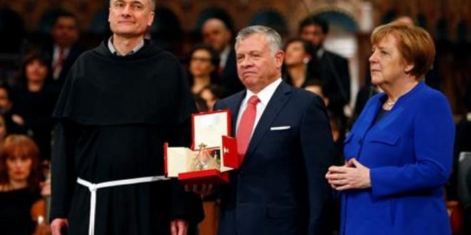 يتقدم الأستاذ الدكتور عبدالله سرور الزعبي رئيس جامعة البلقاء التطبيقية باسمه واسم اسرة الجامعة من اعضاء الهيئتين التدريسية والإدارية والطلبة بأسمى آيات التهنئة والتبريك من سيد البلاد جلالة الملك عبدالله الثاني ابن الحسين المعظم بمناسبة تسلمه جائزة مصباح السلام. وقال الدكتور الزعبي ان حصول جلالته على هذا الجائزة دليل تقدير عالمي على جهود جلالة الملك في ارساء قواعد المحبة والسلام في العالم وفي المنطقة بشكل خاص وبين اتباع الديانات السماوية كافة. كما ان هذا التقدير العالمي لجلالته يدل على الخطاب الاردني الديني المتسامح والانسجام الديني المتوافق مع تعاليم ديننا الاسلامي الحنيف. كما يدل هذا التكريم على مكانة الاردن التي باتت محل تقدير عالمي نظرا لدوره المحوري في ارساء قواعد المحبة والسلام من خلال المبادرات التي اطلقها سيدي صاحب الجلالة الهاشمية في رسالة عمان وكلمة سواء والتي بينت للعالم حقيقة الاسلام دين القيم والأخلاق والتسامح.