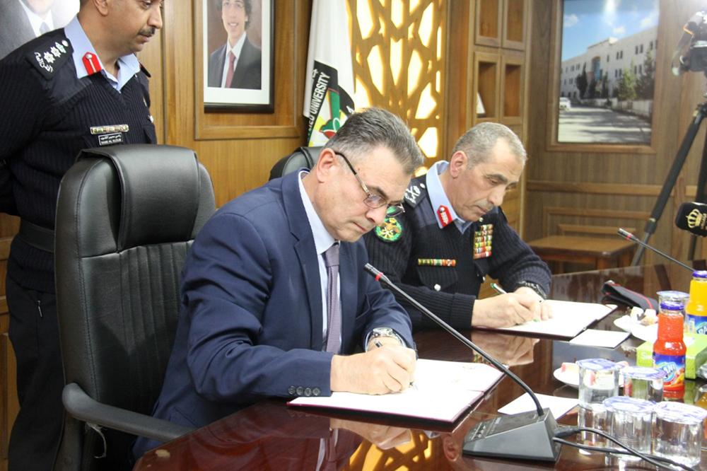 وقع مدير الأمن العام اللواء فاضل الحمود ورئيس جامعة البلقاء التطبيقية الدكتور عبد الله سرور الزعبي ، اتفاقيتي تعاون في مجال تنفيذ برنامج الإصلاح والتأهيل لمرحلة الدرجة الجامعية المتوسطة، وتبادل الخبرات في تنمية وبناء القيادات الشبابية وتحصين الطلبة والمجتمع من الفكر المتطرف والتجنيد الإلكتروني.