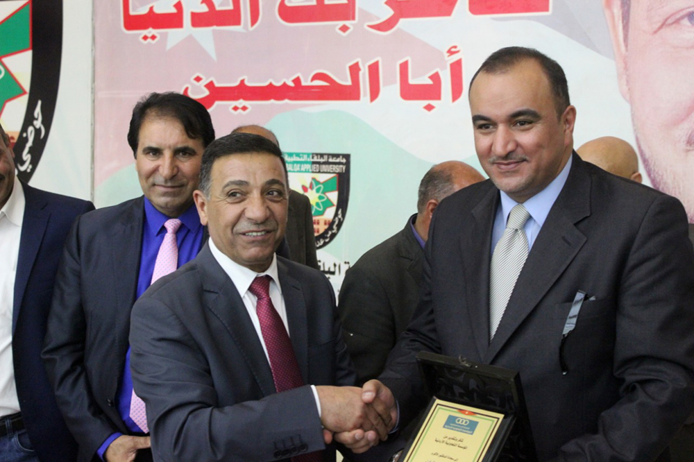والدكتور منذر كريشان عميد الكلية ومدير مديرية تعاون محافظة الزرقاء السيد خالد ابو دلبوح ورئيس الاتحاد الإقليمي التعاوني