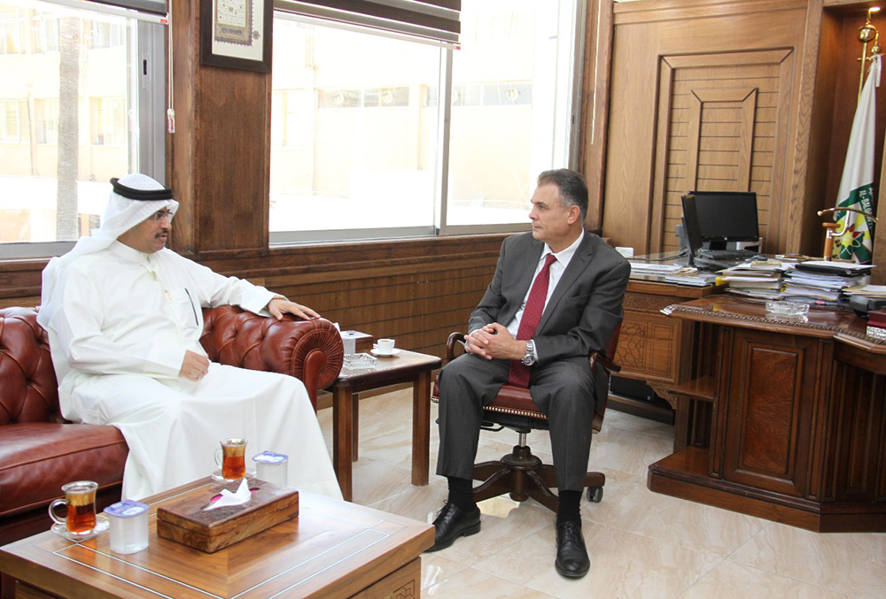 وأشاد خلال لقائه برئيس الجامعة الدكتور عبدالله سرور الزعبي، في مكتبه، الأحد، بالإجراءات المتخذة من قبل الجامعة بتذليل الصعوبات كافة التي يواجهها الطلبة الكويتيون ممن هم على مقاعد الدراسة بالجامعة وكلياتها.