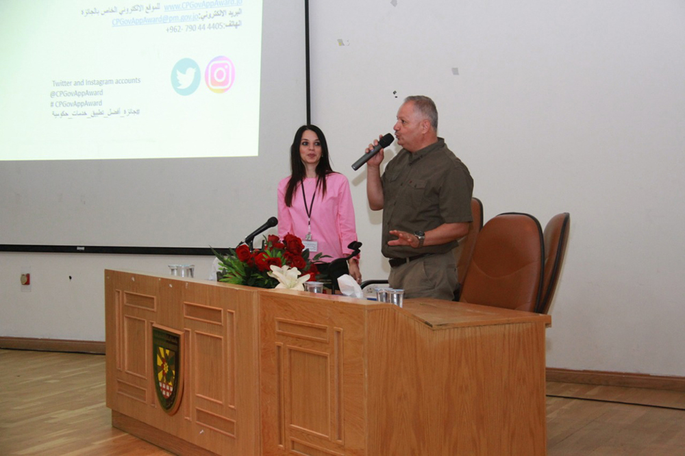 وقدمت وئام أبو هنطش من فريق حملة الترويج بالجائزة من رئاسة الوزراء خلال الورشة التي حضرها عدد من عمداء الكليات وعميد شؤون الطلبة وأعضاء من الهيئة التدريسية وجمع كبير من طلبة الجامعة عرضاً وفيديو يوضح شروط المشاركة والقطاعات المستهدفة لتصميم تطبيقات متعلقة بالخدمات الحكومية المقدمة للجمهور والتي تشمل ستة قطاعات هي الصحة والتعليم، والسياحة، وبيئة الأعمال، والنقل، والمياه والتي تخدم المواطن بشكل مباشر وتشكل أولوية للحكومة .