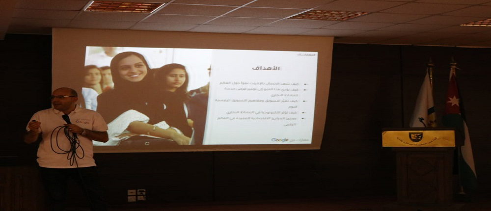 وتضمنت الورشة العديد من المحاور (مقدمة عن محركات البحث ،التسوق عبر الانترنت وكيفية استخدام الشبكات الاجتماعية ) وتهدف الورشة لتطوير قدرات الطلبة ومهاراتهم في انشاء صفحات الكترونية لمشاريعهم وتسويقها عبر الانترنت .