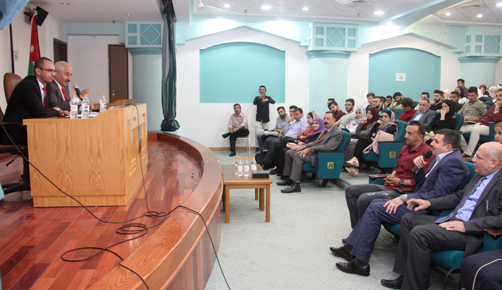 وحضر المحاضرة الدكتور هيثم النادر مدير وحدة التنمية وخدمة المجتمع المحلي والدكتور عمر البحبوح عميد كلية السلط التقنية وعدد من طلبة الجامعة.