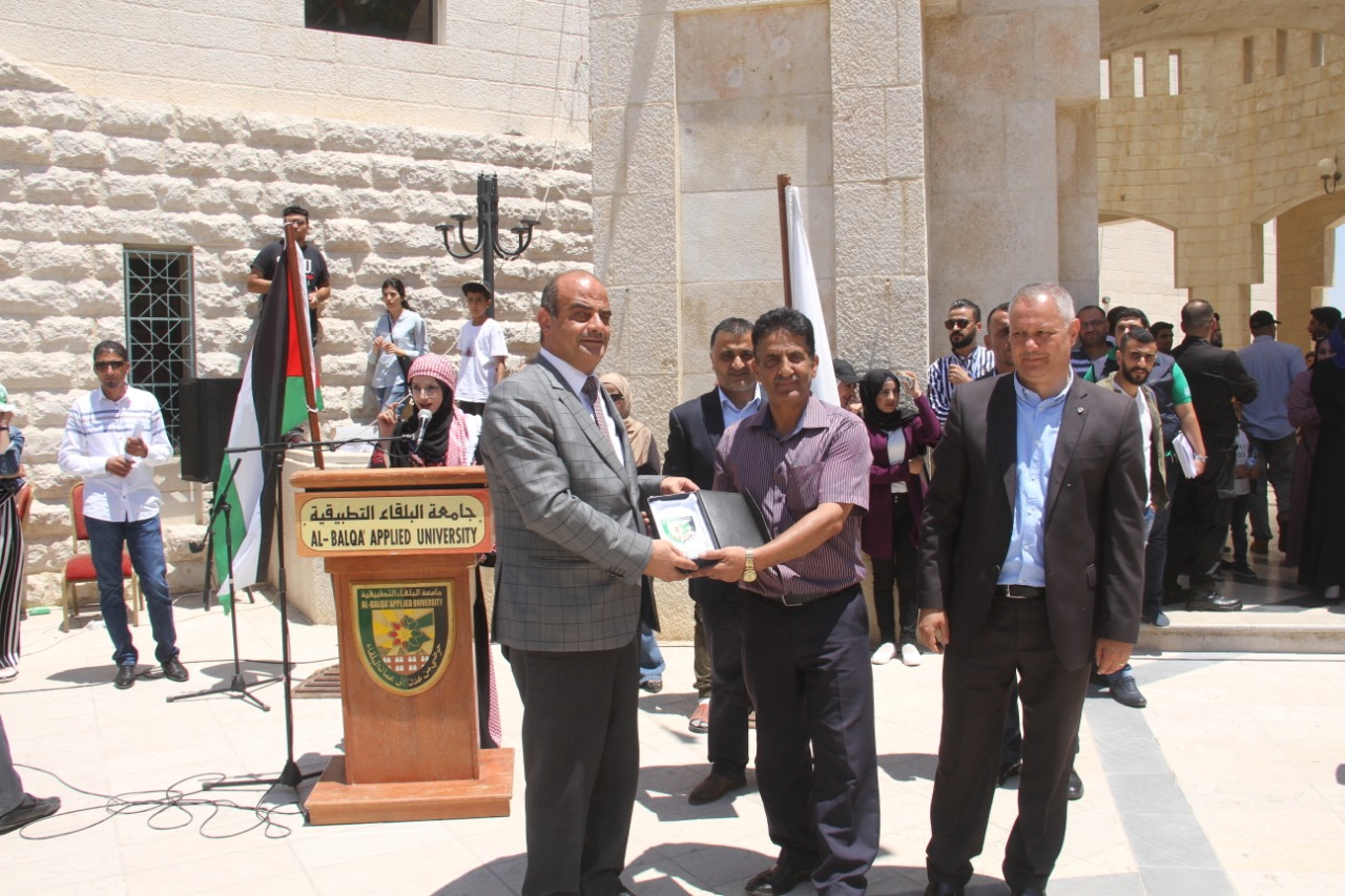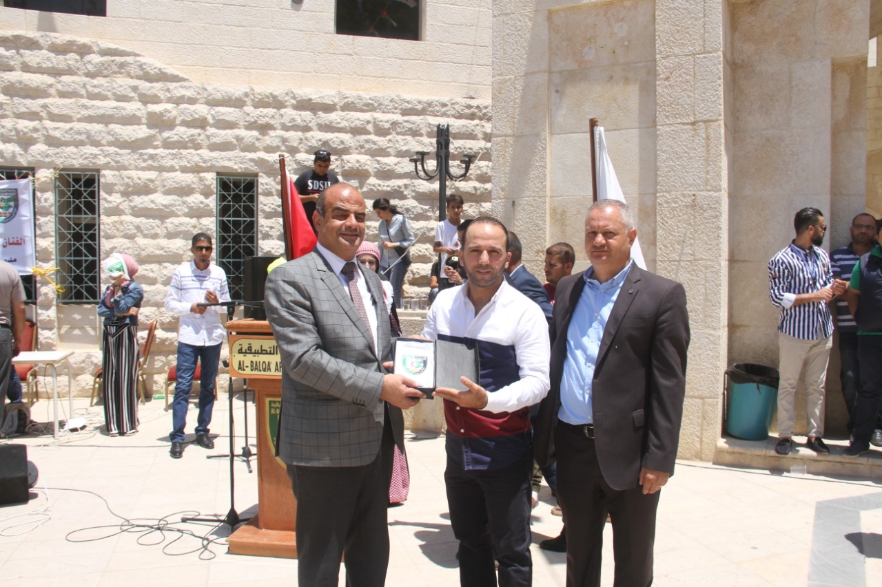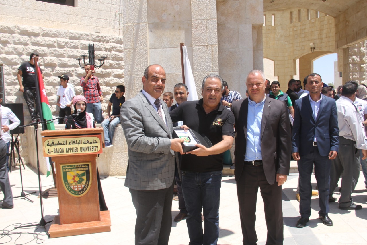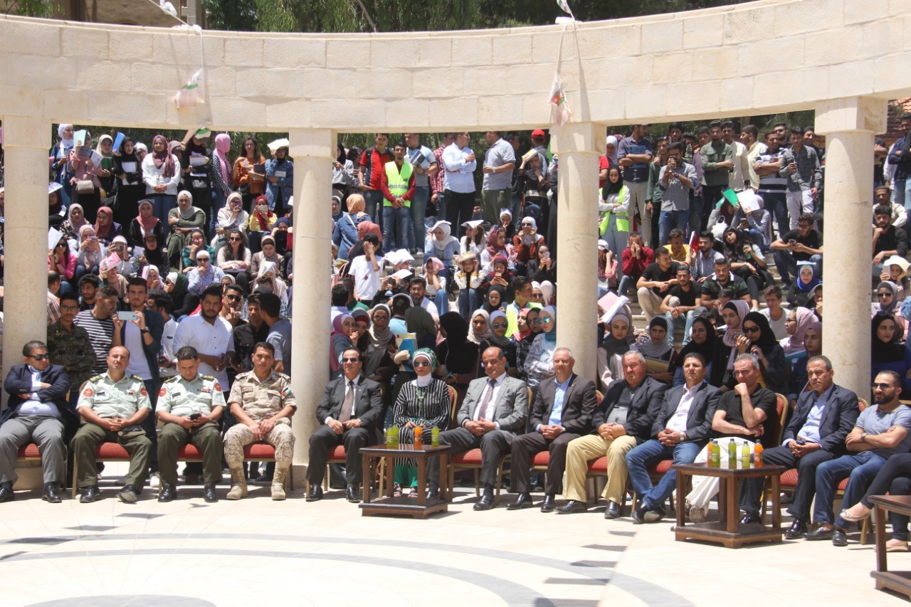 مندوبا عن رئيس جامعة البلقاء التطبيقية الاستاذ الدكتور عبدالله سرور الزعبي رعى نائب رئيس الجامعة للشؤون الادارية الاستاذ الدكتور جمال النسور الاحتفال الفني الذي نظمته عمادة شؤون الطلبة بمناسبة العيد العشرين لتولي جلالة الملك عبدالله الثاني ابن الحسين سلطاته الدستورية وأقيمت فعالياته على مدرج المكتبة المركزية في مركز الجامعة . عميد شؤون الطلبة الدكتور فادي سماوي قال خلال كلمه له في الاحتفال : ها نحن نتنسم عبق وشذى مناسبة لا اغلى ولا اجمل منها ألا وهي العيد العشرين للجلوس الملكي وتسلم جلالة الملك عبدالله الثاني ابن الحسين المعظم حفظه الله ورعاه سلطاته الدستورية. وأكد الدكتور سماوي اننا كأردنيين وفي العيد العشرين للجلوس الملكي نفتخر بالتطور الحاصل في جميع القطاعات العسكرية والاقتصادية والاجتماعية والتعليمية وتعد رسالة عمان والأوراق النقاشية لجلاله الملك هي نبراس هداية نحو التطور والرقي فغدا الاردن واحة امن واستقرار ، وأضاف الدكتور عميد شؤون الطلبة اننا مطالبين بالمحافظة على المنجز الوطني الذي بناه الاباء والأجداد والدفاع عنه بالمهج والأرواح والتسلح بالعلم والمعرفة لبناء اردن المستقبل . وتضمنت فعاليات الاحتفال الذي حضره عدد من عمداء الكليات ومدراء الدوائر وطلبة الجامعة مشاركة مميزة من فرقة امانة عمان الكبرى حيث قدمت عروض للدبكة الأردنية ، والرقصات الفلكلورية التراثية والأغاني الوطنية التي تتغنى بالقائد والوطن كما تضمن برنامج الاحتفال فقرة فنية لفرقة السلط للفنون الشعبية قدمت من خلالها لوحات فنية من الفلكلور الشعبي والدبكة ، واختتمت فعاليات الاحتفال بمشاركة فنية مميزة للفنان الاردني ماجد زريقات والذي يتميز بفنه الوطني الشعبي والتي يتغنى فيه بقائد الوطن والجيش العربي حيث قدم مجموعة من اغانيه الوطنية. وفي ختام الاحتفال قدم مندوب رئيس الجامعة الاستاذ الدكتور جمال النسور درع الجامعة للفنان زريقات ولفرقة امانة عمان وفرقة السلط الشعبية تقديرا لمشاركتهم المميزة في فعاليات الحفل الفني .