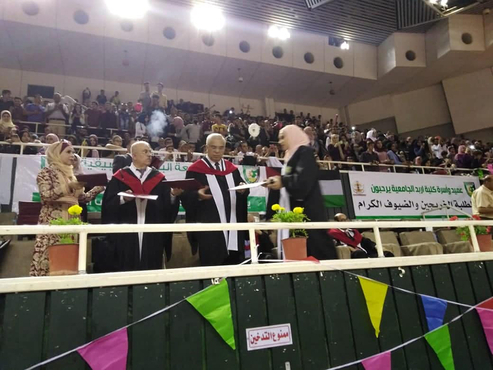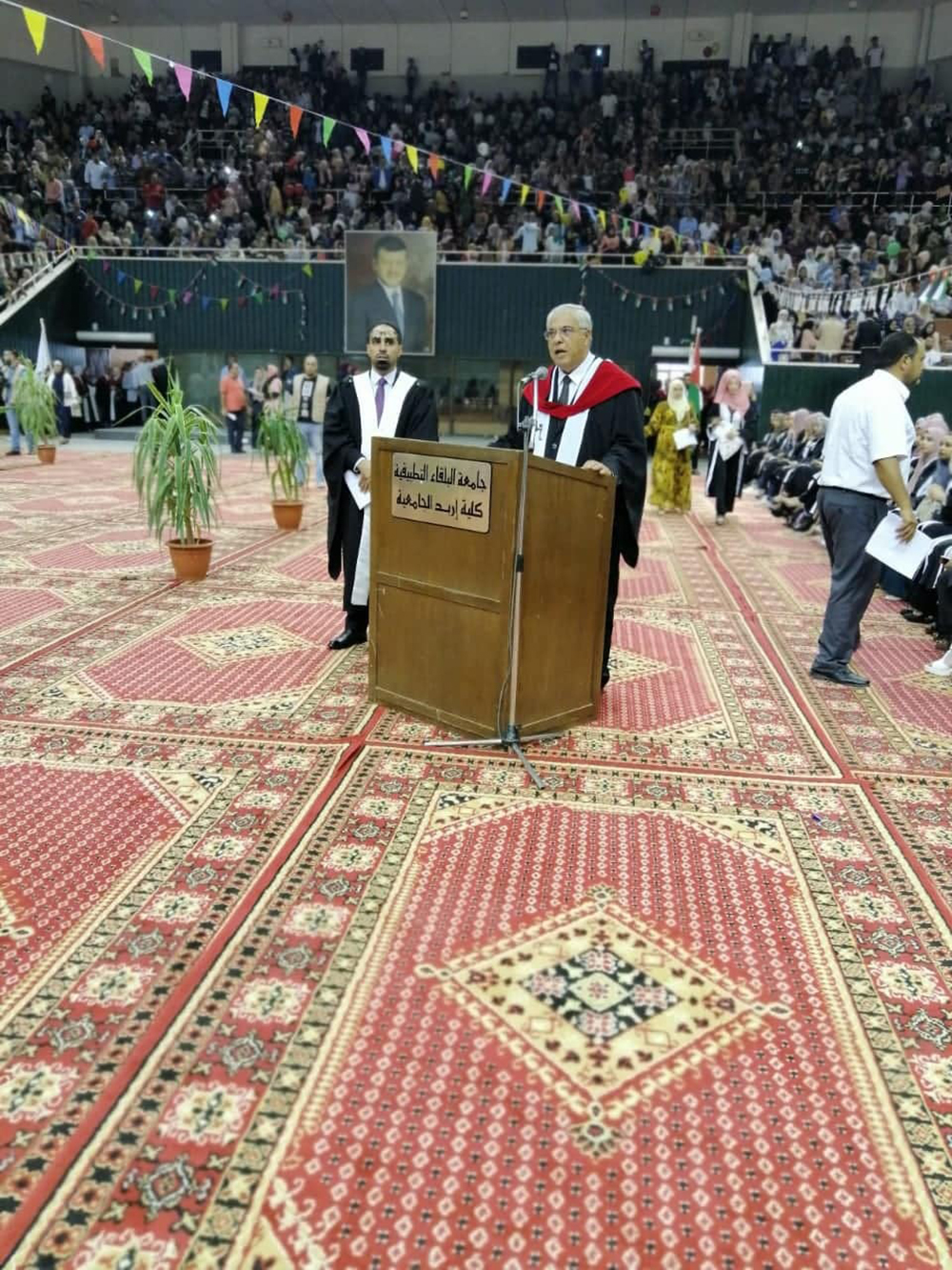 مندوباً عن رئيس جامعة البلقاء التطبيقية أ. د عبدالله سرور الزعبي، رعى عميد كلية اربد الجامعية أ. د. مصطفى عيروط حفل تخريج طلبة الكلية الفوج الخامس عشر لطلبة الكلية لمستوى البكالوريوس ، والفوج الاربعين لمستوى الشهادة الجامعية المتوسطة وذلك في قاعة مدينة الحسن الرياضية بمحافظة اربد بمشاركة رؤساء الاقسام التعليمية وبحضورعميد شؤون الطلبة الدكتور فادي سماوي  واعضاء الهيئتين التدريسية والإدارية في الكلية .