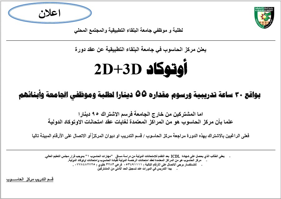 اعلان عن طرح دورة اوتوكاد في مركز الحاسوب