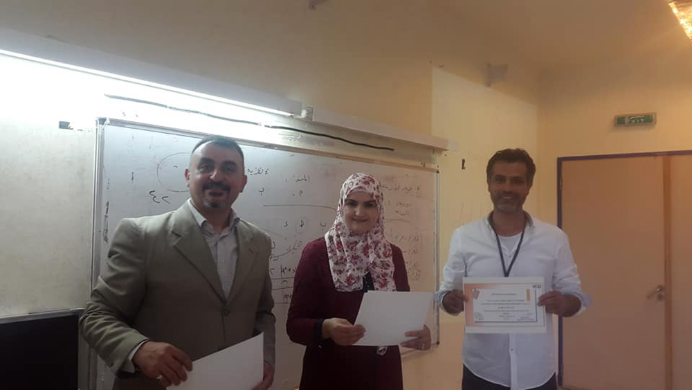 وفي نهاية الدورة تم توزيع الشهادات على المشاركين من كلية الأميرة رحمة الجامعية وعددهم (21) ومن كلية الأميرة عالية الجامعية وعددهم (16) مشاركًا.