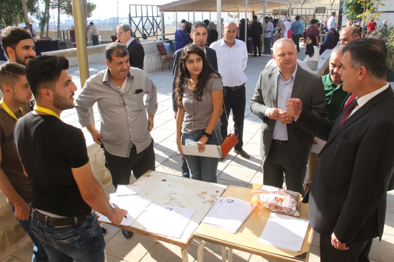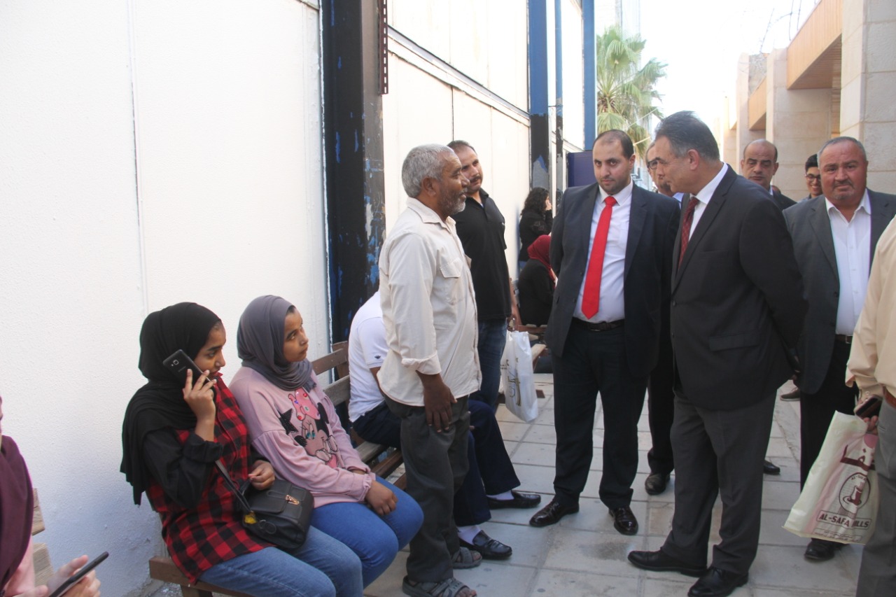وقام الدكتور الزعبي بجولة في الصالة الرياضية والتي اعدت خصيصا لقبول و تسجيل الطلبة الجدد بحيث يتمكن الطالب من إنهاء عملية قبوله وتسجيله ودفع الرسوم واستلام الهوية الجامعة وبرنامجه الدراسي في مكان واحد كما شملت الجولة قاعات عقد امتحان المستوى في مبنى اكاديمية البلقاء الالكترونية .
