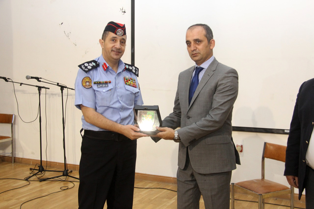وفي الختام سلم الدكتور خالد الزعبي درع الجامعة للعميد العوران تقديرا لجهاز الأمن العام وجهوده وما يقدمه للمواطن الأردني من خدمات أمنية وتوعوية .