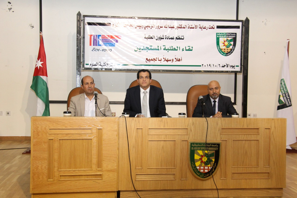 وفي بداية اللقاء نقل الدكتور أبو بكر تهنئة رئيس الجامعة الاستاذ الدكتور عبدالله سرور الزعبي وتهنئة اسرة الكلية للطلبة بنجاحهم في الثانوية العامة وقبولهم في كلية الزراعة التكنولوجية ، وخاطب الدكتور سميح ابو بكر الطلبة قائلا: يحق لكم ان تفتخروا بقبولكم في جامعة البلقاء التطبيقية للسمعة الطيبة والمستوى المتميز ولما حققتها من انجازات وتطور علمي حتى اصبحت تضاهي مثيلاتها من الجامعات العالمية مشيرا الى الانجاز الذي حققته الجامعة مؤخرا بدخولها نادي افضل الف جامعة حسب تصنيف التايمز ، مؤكدا ان هذا الانجاز يعود للجهود التي بذلتها ادارة الجامعة والعاملين فيها.