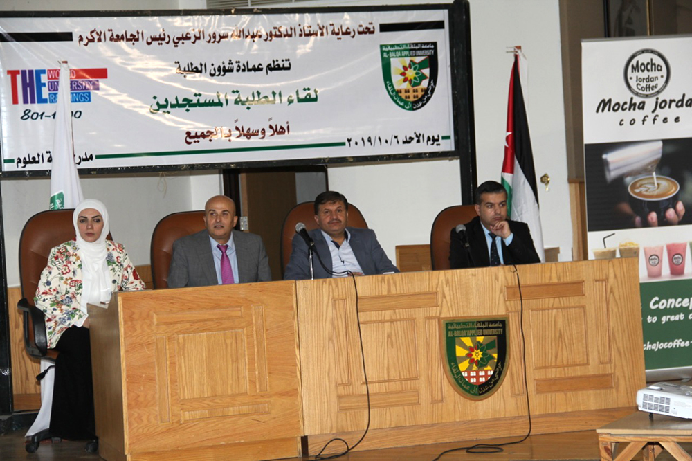 وقدم الدكتور ختاتنة التهنئة للطلبة الجدد بقبولهم في جامعة البلقاء التطبيقية متمنيا لهم حياة جامعية مليئة بالسعادة والتحصيل العلمي المتميز   كما دعا الختاتنة الطلبة الى ضرورة مراجعة الاقسام الاكاديمية والمرشدين في الكلية في حال وجود مشكلة في التسجيل  او غيرها من القضايا الطلابية  مؤكدا على ضرورة الالتزام بالخطة الاسترشادية والتي تعتبر خارطة طريق للطلبة في جميع سنواتهم الدراسية .