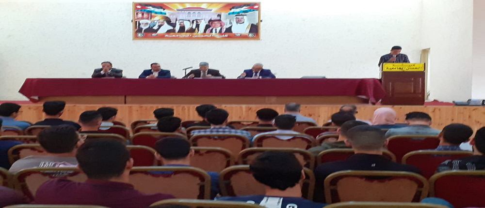 تحت رعاية الأستاذ الدكتور عبد المطلب خضراوي عميد كلية الحصن الجامعية, أقيم لقاء مع الطلبة المستجدين في مسرح الكلية, وذلك بمناسبة بدء الفصل الدراسي الأول للعام الجامعي 2019/2020, وبحضور نائب ومساعدي العميد وأعضاء من الهيئة التدريسية والإدارية وعدد كبير من الطلبة المستجدين.