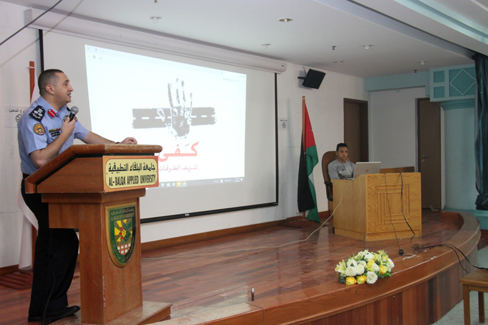نظمت وحدة التنمية وخدمة المجتمع المحلي في جامعة البلقاء التطبيقية بالتعاون مديرية شرطة محافظة البلقاء / مركز امن المدينة -الشرطة المجتمعية فعالية تحت عنوان: "مشروع السلامة على الطريق " استهدفت فيها طلبة المدارس وحاضر فيها العميد يزن العوران مدير شرطة البلقاء ومختصين من ادارة السير والمعهد المروري والدكتور خالد الزعبي مساعد الرئيس لشؤون خدمة المجتمع المحلي مدير وحدة التنمية وخدمة المجتمع المحلي وذلك على مسرح المكتبة المركزية في الجامعة .
