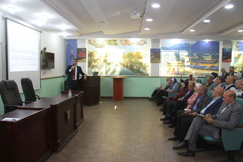 الاستاذ الدكتور سعيد ابو رمان قال بان هذه الفعالية تعتبر الاولى من نوعها التي تنظمها عمادة البحث العلمي في الجامعة خلال العام الجامعي 2019-2020 مشيرا الى ان الهدف منها هو تعريف اعضاء الهيئة التدريسية في الجامعة بالخدمات الالكترونية التي تقدمها عمادة البحث العلمي وتعريفهم بآليات النشر في المجلات العلمية العالمية المحكمه.