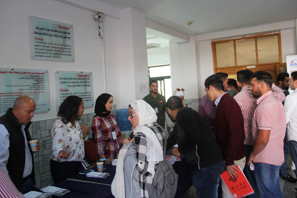 نظمت عمادة شؤون الطلبة /مكتب الإرشاد الوظيفي ومتابعة الخريجين / صندوق الملك عبدالله الثاني للتنمية وبالتعاون مع المنظمة اليابانية للتعاون الدولي ( جايكا) حملة تعريفية بالإرشاد الوظيفي لغايات تعريف الطلبة بأهمية الإرشاد الوظيفي وخدمات المكتب في جامعة البلقاء التطبيقية وانعكاس ذلك على الطلبة ومسارهم الوظيفي .