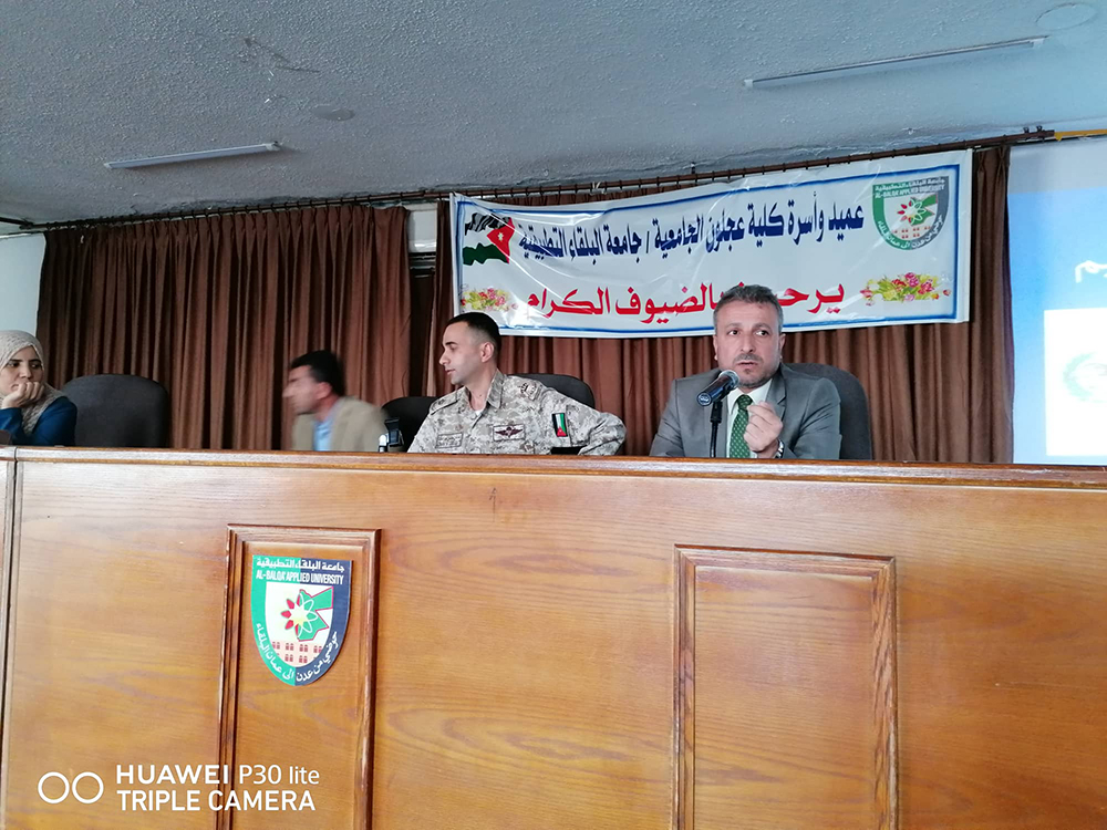 وفي البداية رحب الدكتور ايمن فريحات مندوبا عن عميد كلية عجلون الجامعية الاستاذ الدكتور حامد الدعوم بمندوبي المكرمة الملكية وشكرهم على جهودهم التي يبذلوها في خدمة الطلبة وقدم الرائد عدنان محاضرة توعوية تعريفية عن الأمور الواجب مراعاتها عند تعبئة نموذج الكفالة ليتحقق الهدف الأساسي من هذه المكرمة وهو خدمة أبناء القوات المسلحة.