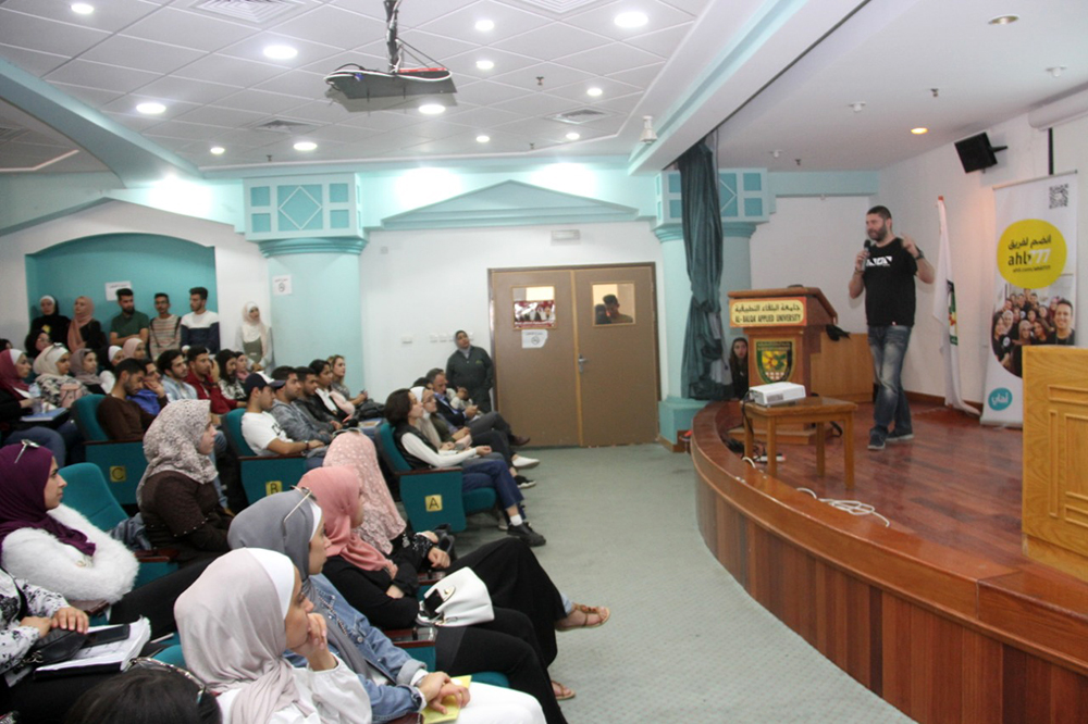 نظمت عمادة شؤون الطلبة في جامعة البلقاء التطبيقية/ مكتب صندوق الملك عبدالله الثاني للتنمية وبالتعاون مع البنك الاهلي الاردني ورشة تعريفية ببرنامج "AHLI777" والذي يهدف الى تنمية وتطوير قدرات الشباب الاردني والمصمم خصيصا لطلبة الجامعات .